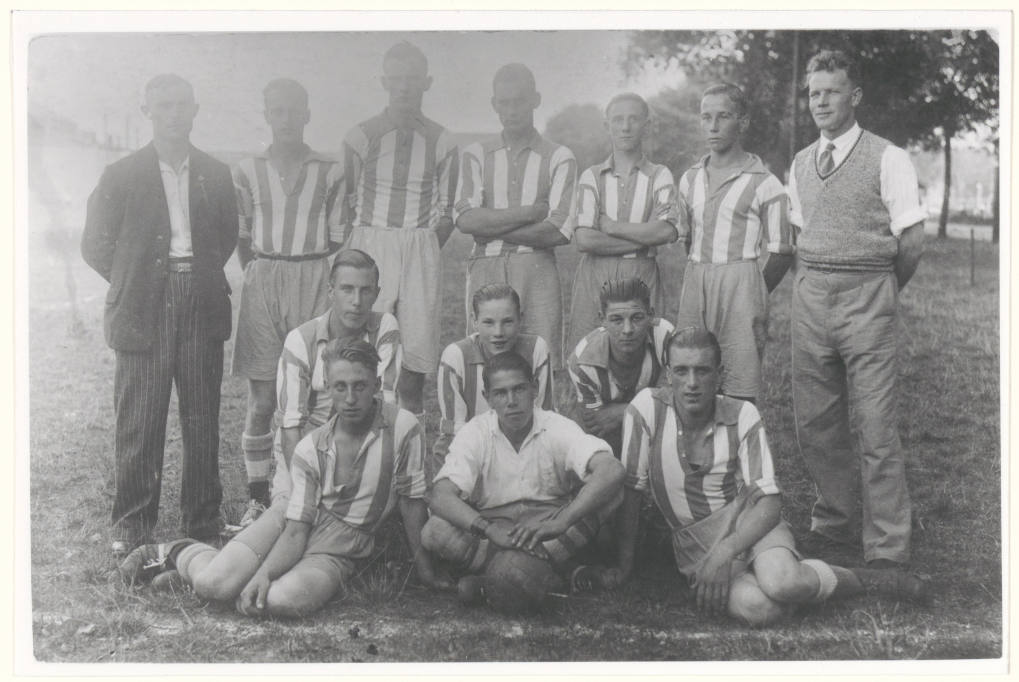 Groepsportret van de op de Staart bij de IJsselstraat spelende niet bij de voetbalbond …