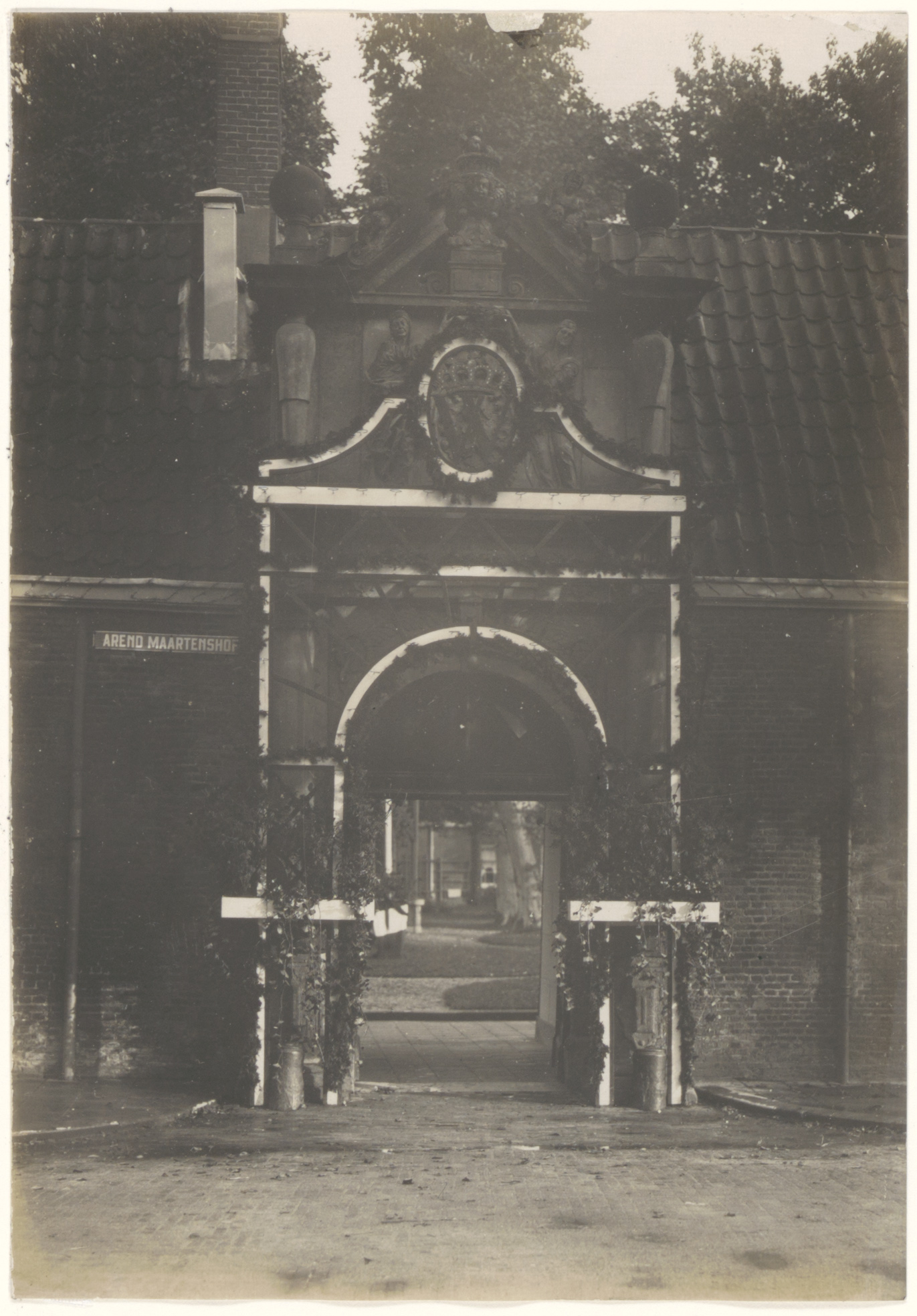 - Versiering en illuminatie van het poortje van de Arend Maartenshof ter gelegenheid van het bezoek van koningin Wilhelmina en de door haar te verrichten opening van de nieuwe haveninrichting van de Zeehaven op 25 september 1930.