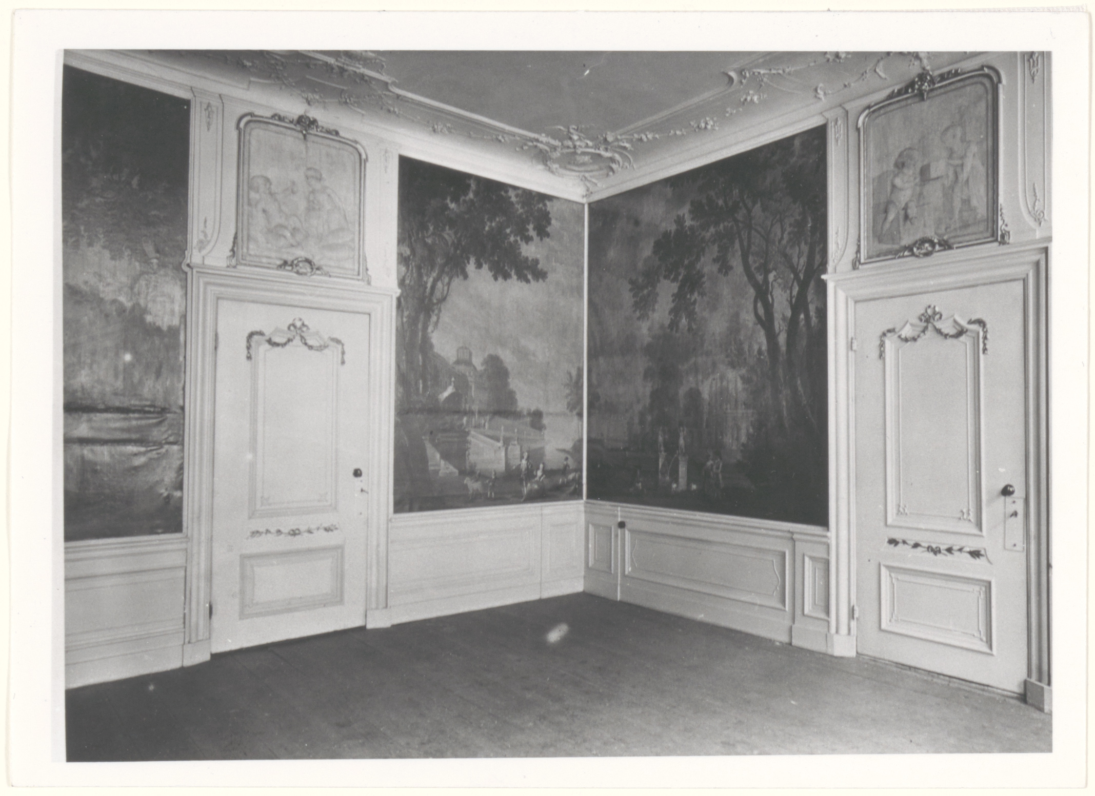 Behangschilderijen met landelijke taferelen van Cornelis Kuipers (1739-1802) in het huis Steegoversloot 33 (oud nr. 31; niet meer bestaand).