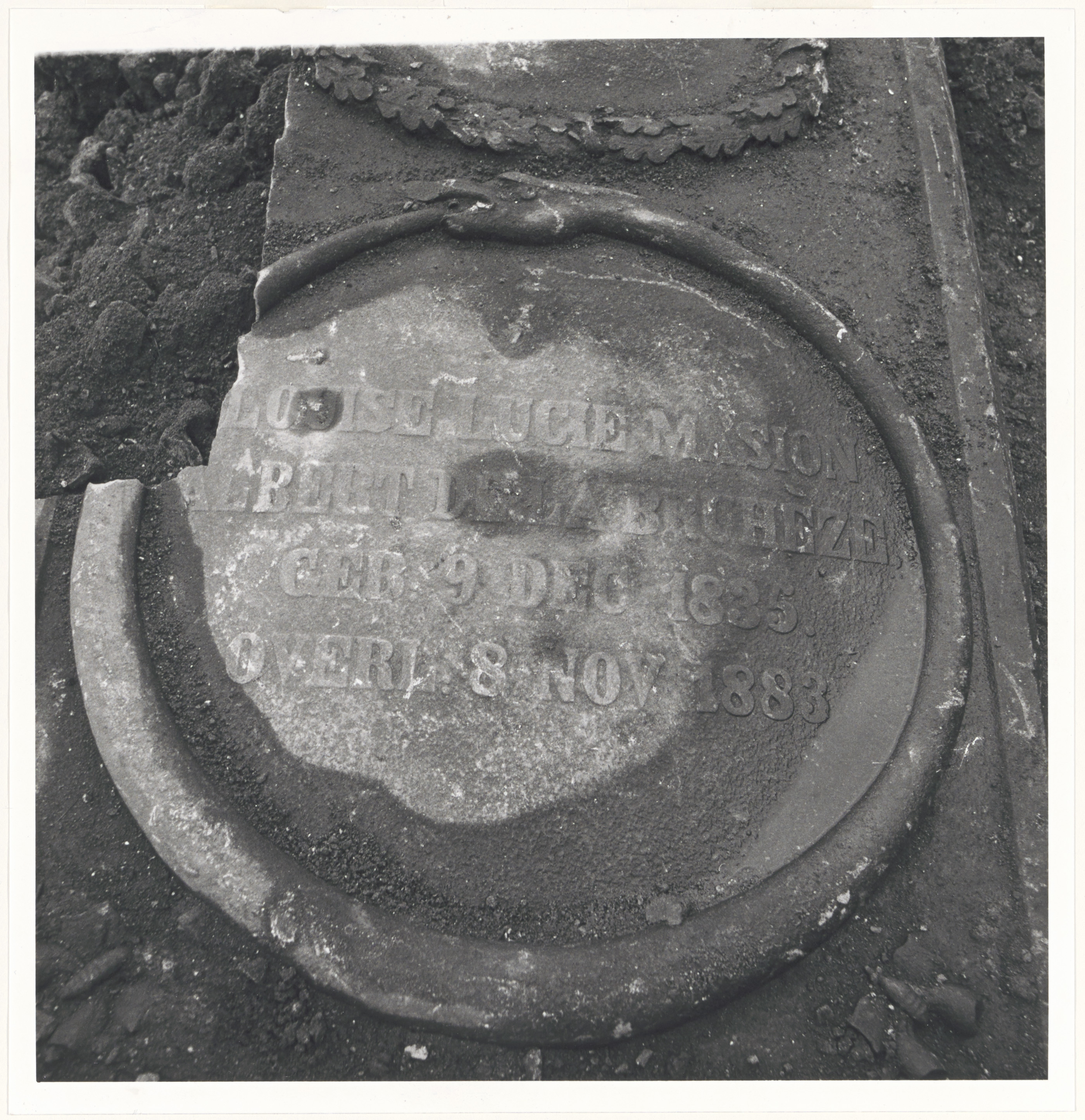 - Een grafsteen, gevonden op het terrein van de in 1989 gesloopte pontonnierskazerne aan de Buiten Walevest, met de tekst: 'Louise Lucie Maison/ Albert de la Bruhèze./geb. 9 dec. 1835/overl. 8 nov. 1883'. Zij werd geboren te Baarle-Nassau en overleed te Dordrecht. Zij was gehuwd met Maximiliaan Joseph Maison, agent buitenlandse huizen.