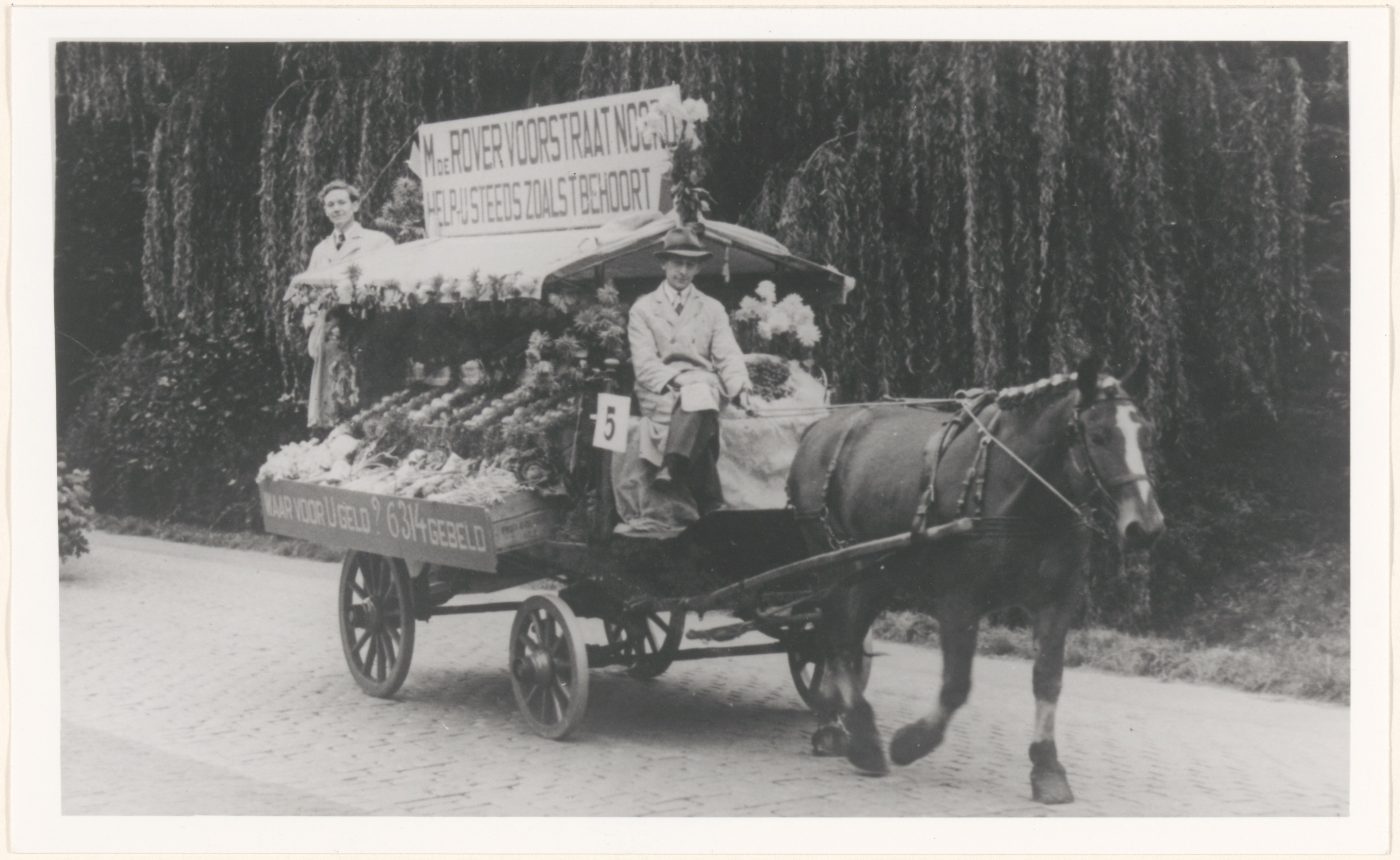 Paard en wagen van de handel in groenten en fruit van M. de Rover rijdt langs …