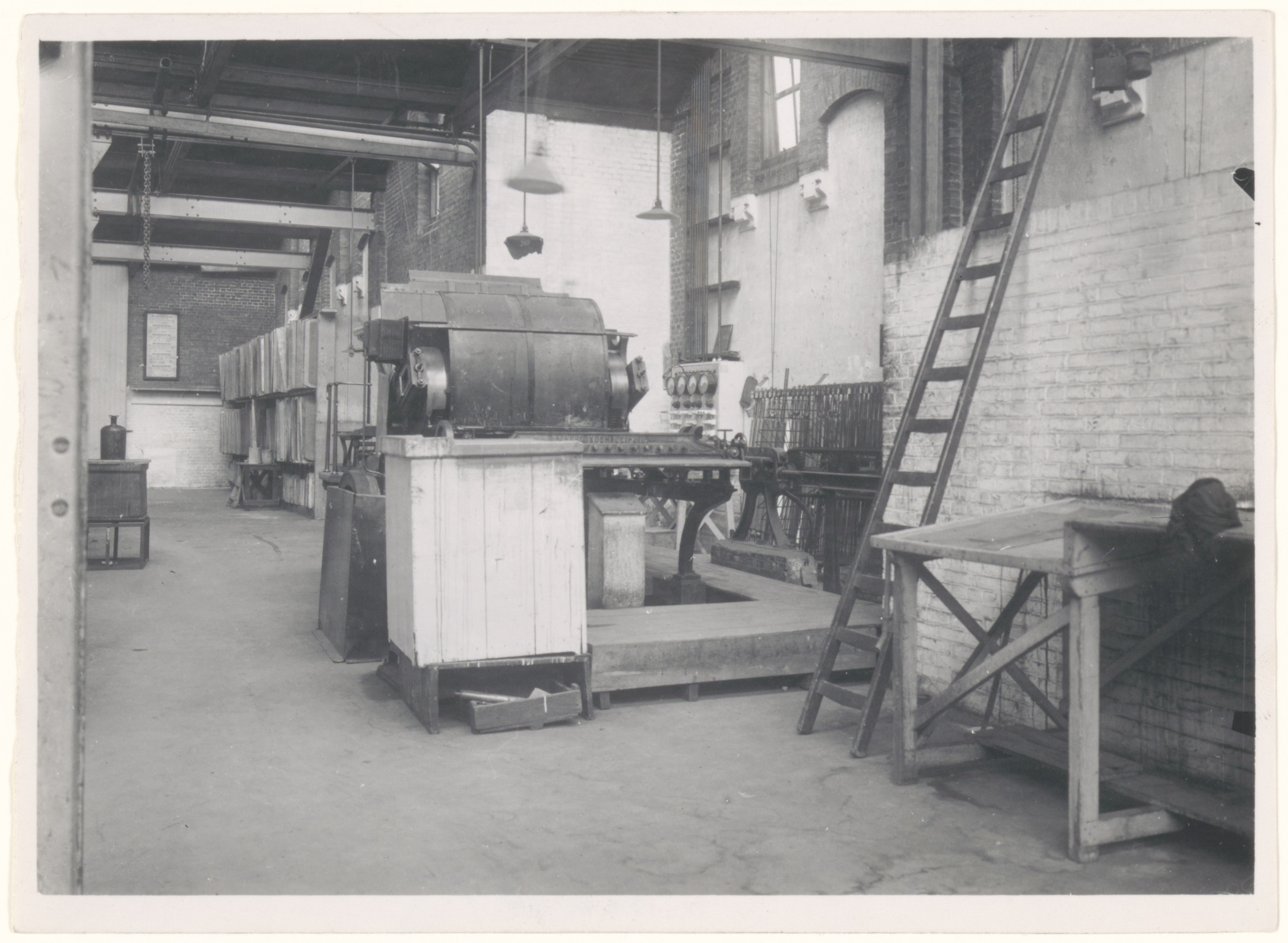 Interieur van blikfabriek Thomassen & Drijver aan de Dubbeldamseweg Noord, hoek Oranjepark.