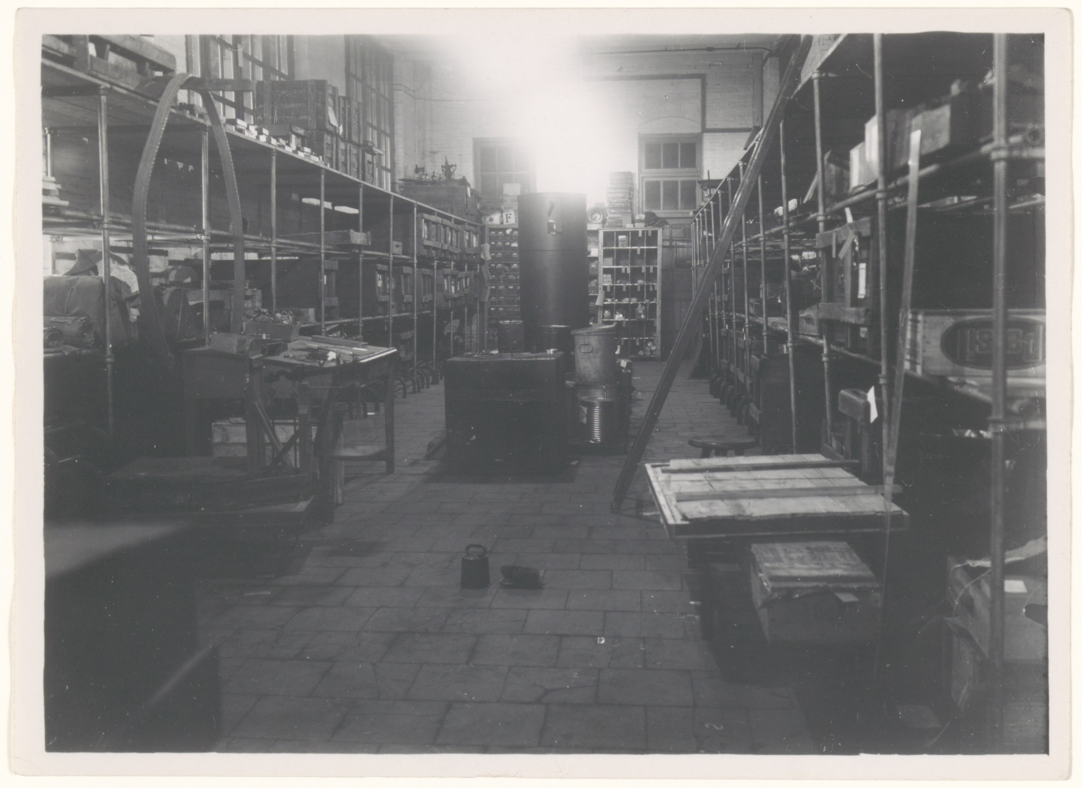- Interieur van blikfabriek Thomassen & Drijver aan de Dubbeldamseweg Noord, hoek Oranjepark.