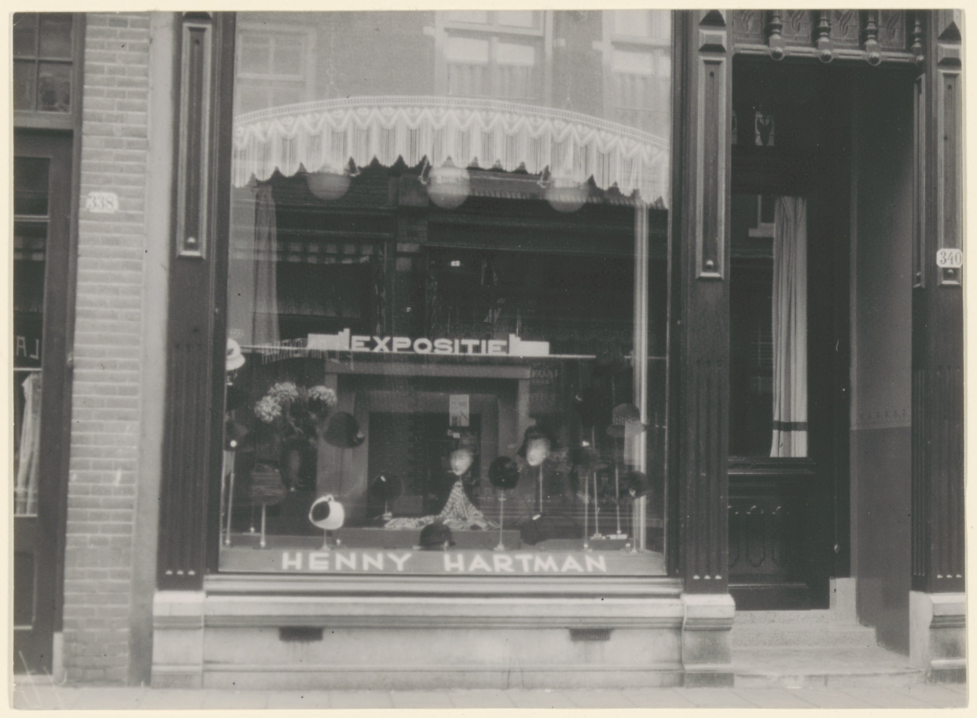 Hoedenmagazijn Henny Hartman aan de Voorstraat 340 (oud nr.); verkocht vooral dameshoeden.