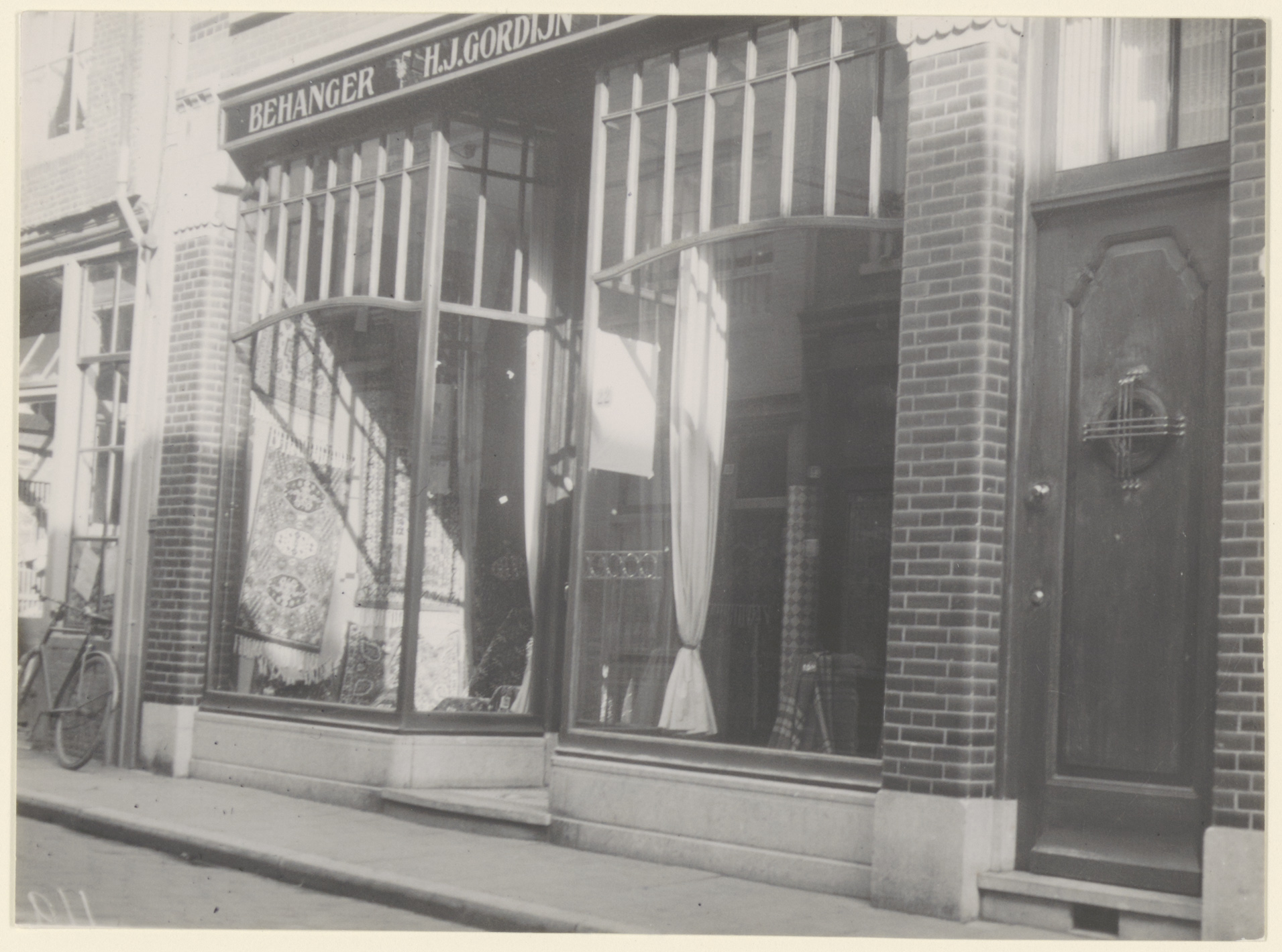 - Winkel van behanger en stoffeerder H.J. Gordijn aan de Grote Spuistraat 22 (oud nr.).