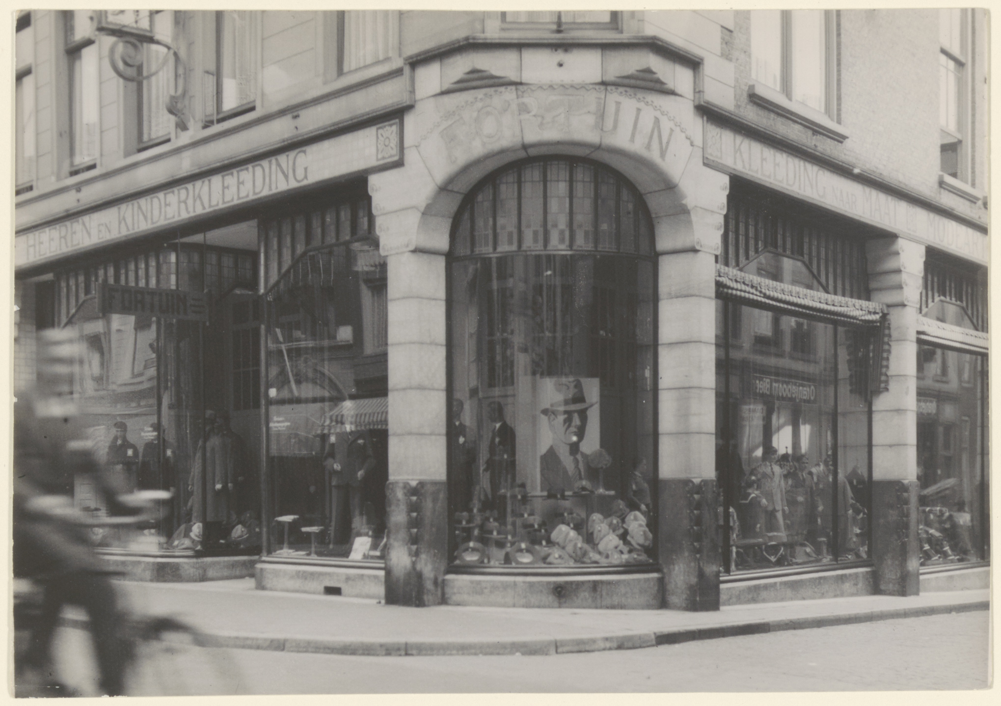 Etalages van de winkel van H. Fortuin, die heren- en kinderkleding verkocht aan de …