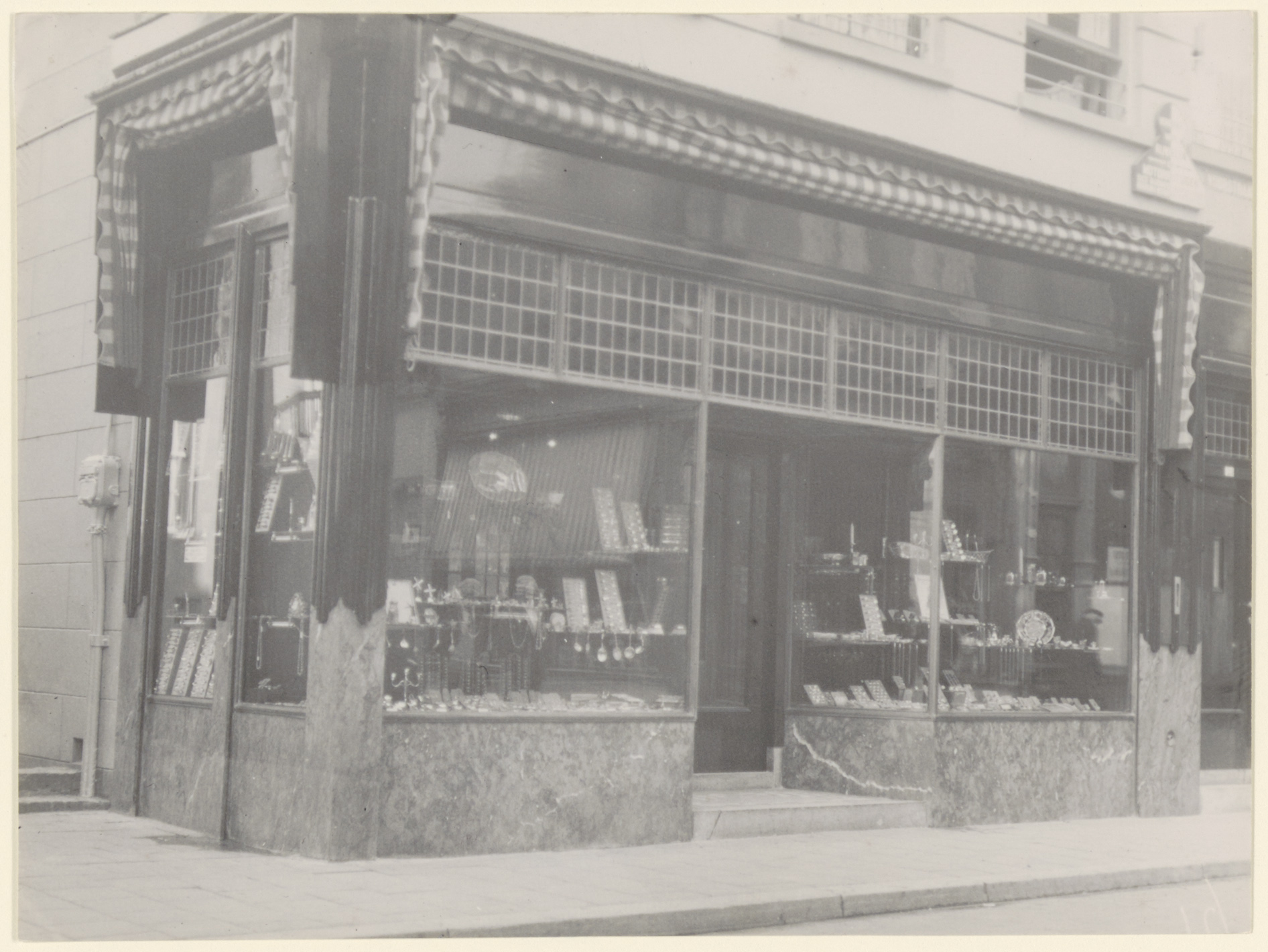 - Juwelier Tonino van eigenaar H. Tonino, aan de Voorstraat 255 (oud nr.); links de Vriesestraatsteiger.