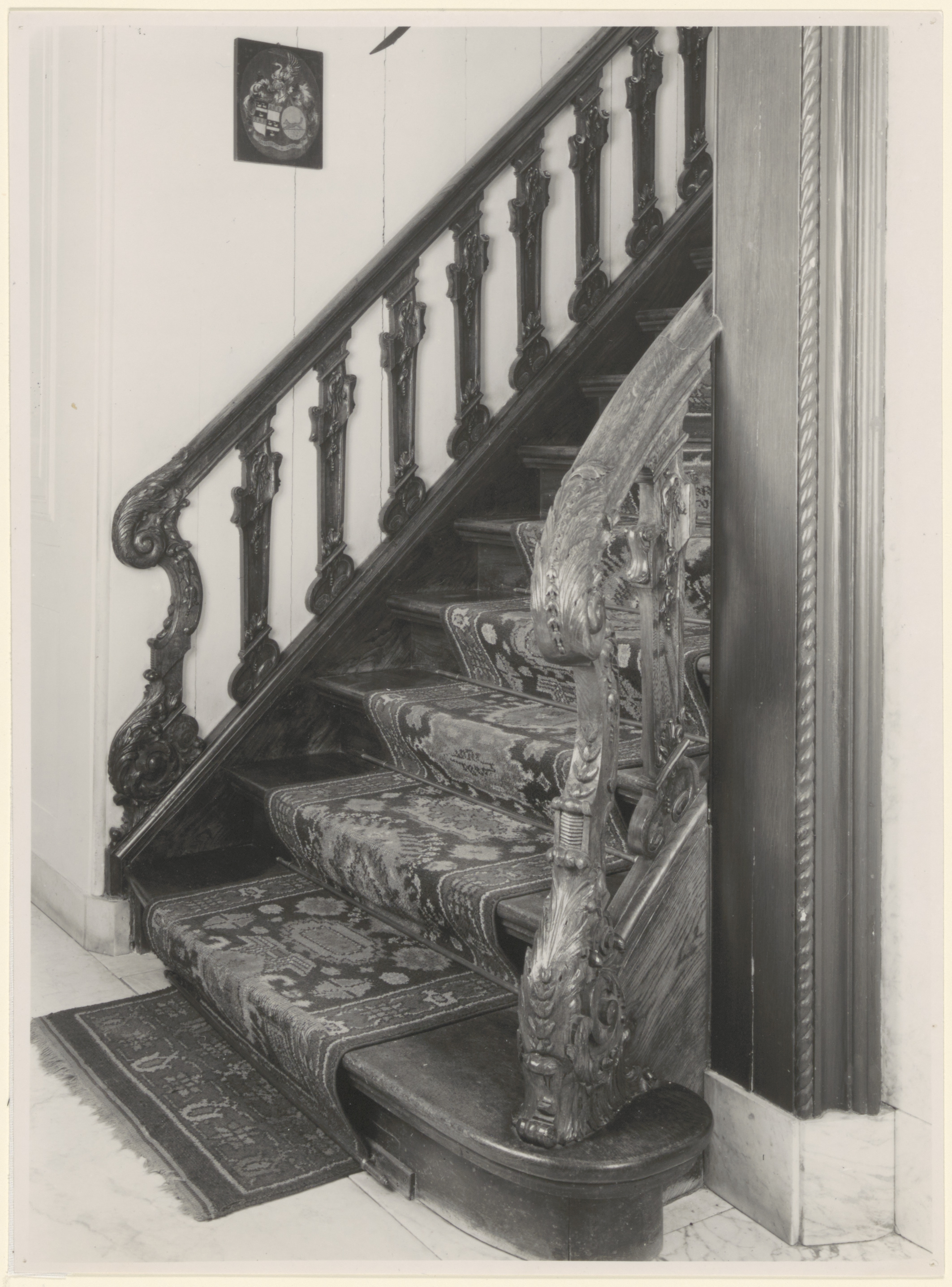Het is het pand Wijnstraat 88 (bij de andere foto staat 50; mogelijk is dat een oud nummer? Het is nu in ieder geval 88). Op het wapen boven de trap staat ook het wapen van de familie Onderwater nog afgebeeld; de vroegere eigenaars van dit pand.