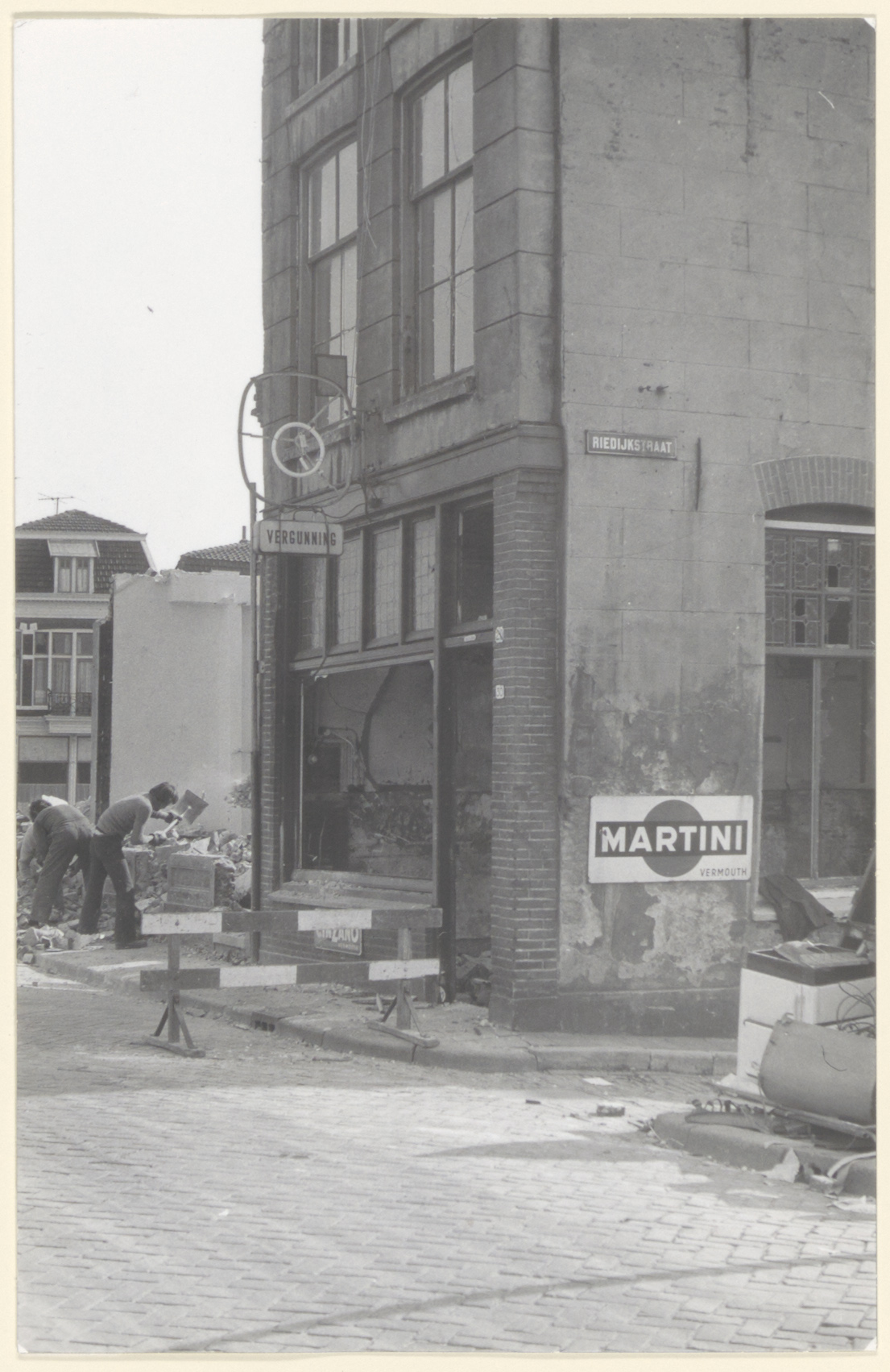 - Sloop van huizen aan de zuidzijde van de Riedijk bij de hoek met de Riedijkstraat (rechts); op de achtergrond links huizen aan de Bleijenhoek.