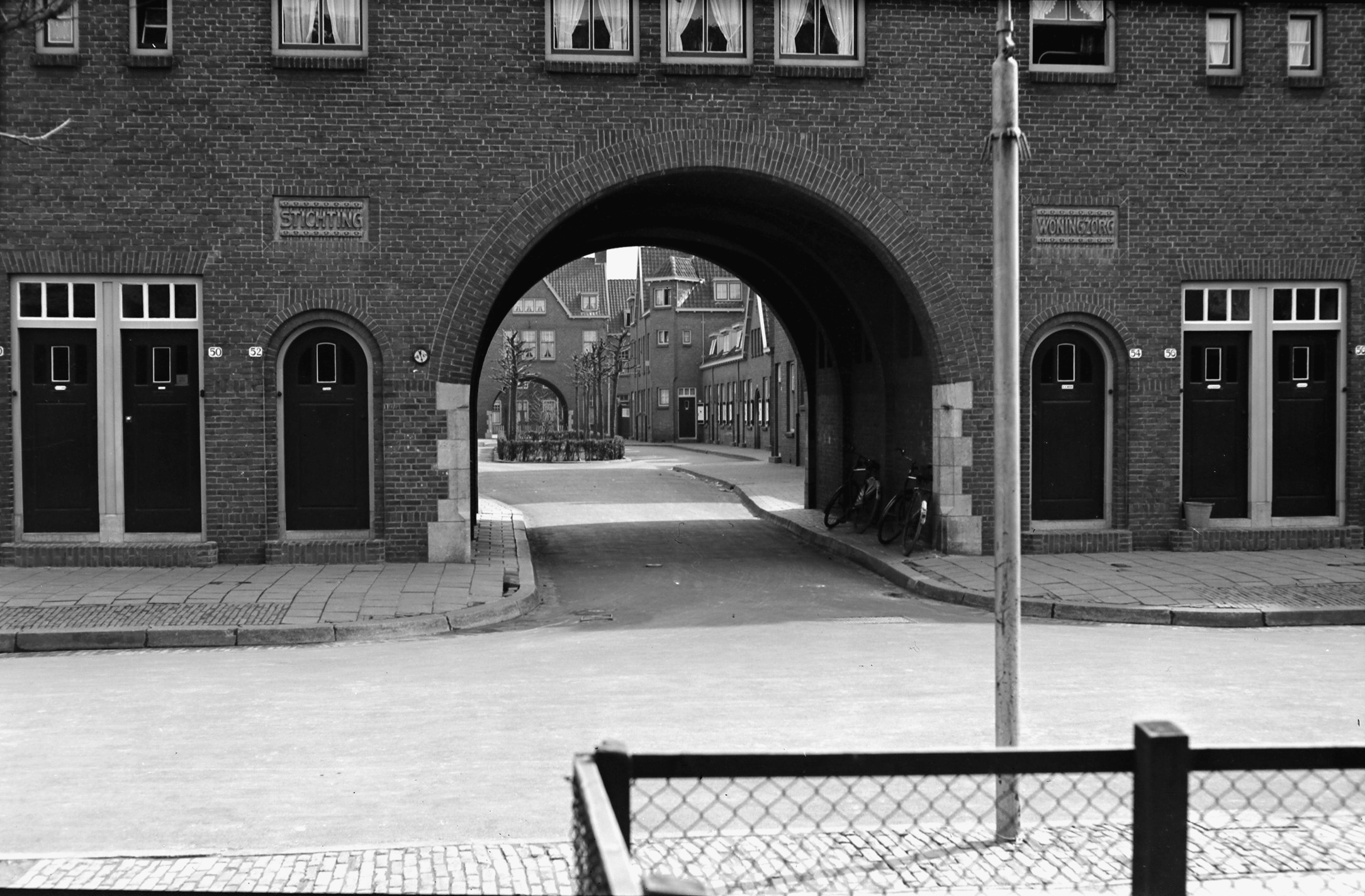 Ingang van de A.C.W. Staringstraat aan de P.A. de Genestetstraat. Bij de andere poort …