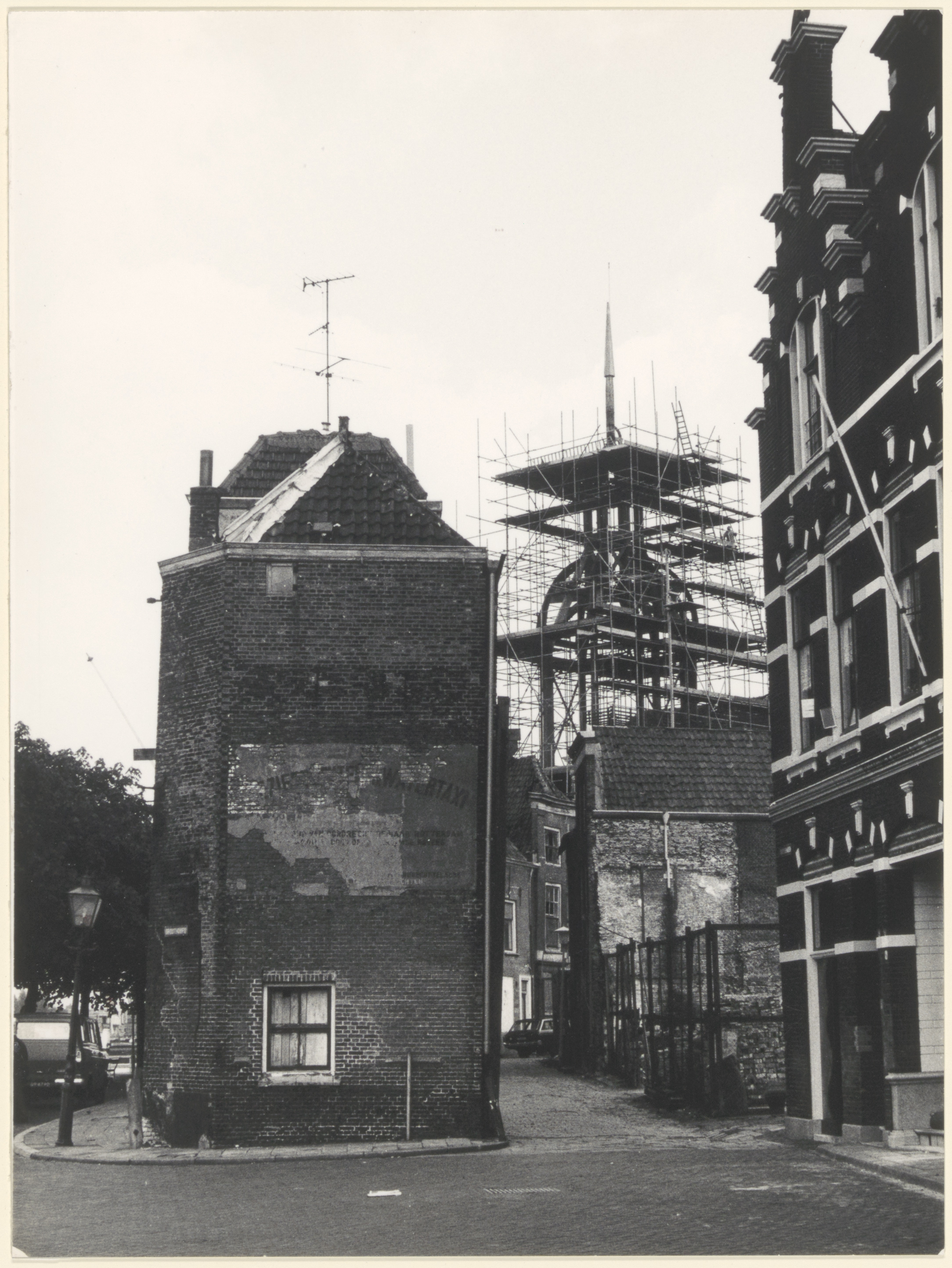 De Palingstraat, gezien vanaf de Kuipershaven. Links het Groothoofd. De Groothoofdstoren staat in de steigers tijdens restauratie.