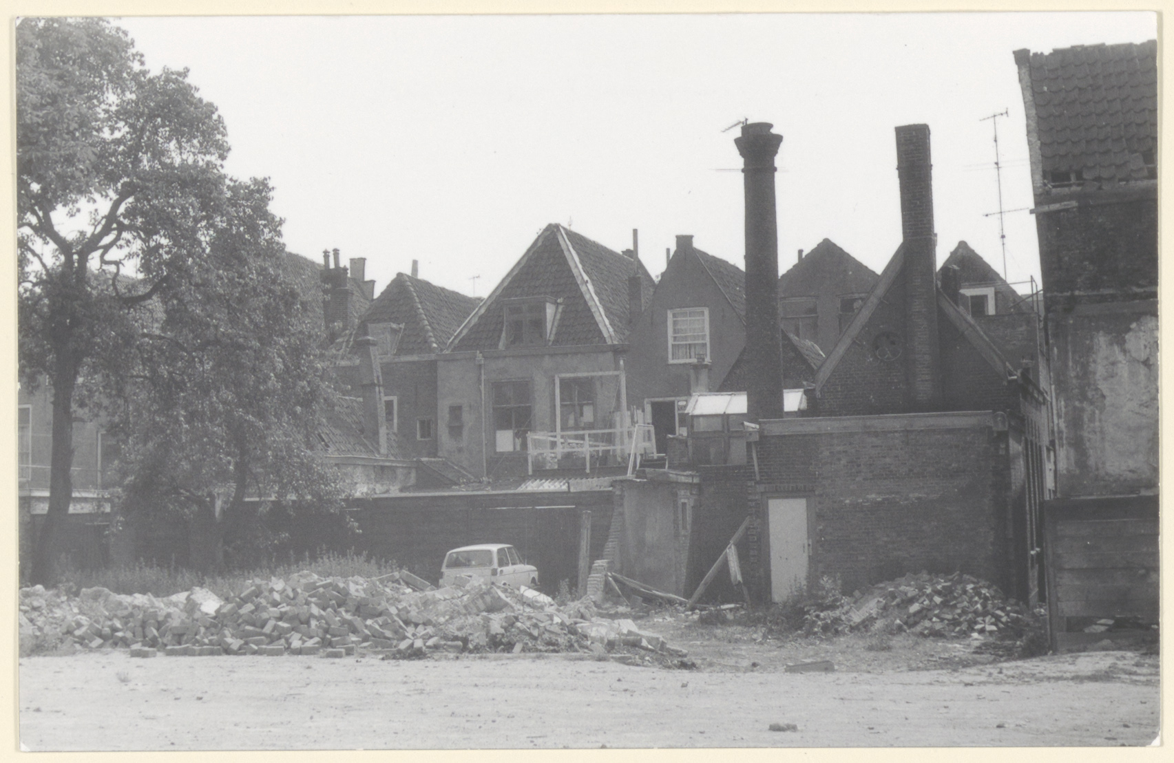 Gezicht van het Drievriendenhof op de achterzijde van huizen in de Vriesestraat. Het …