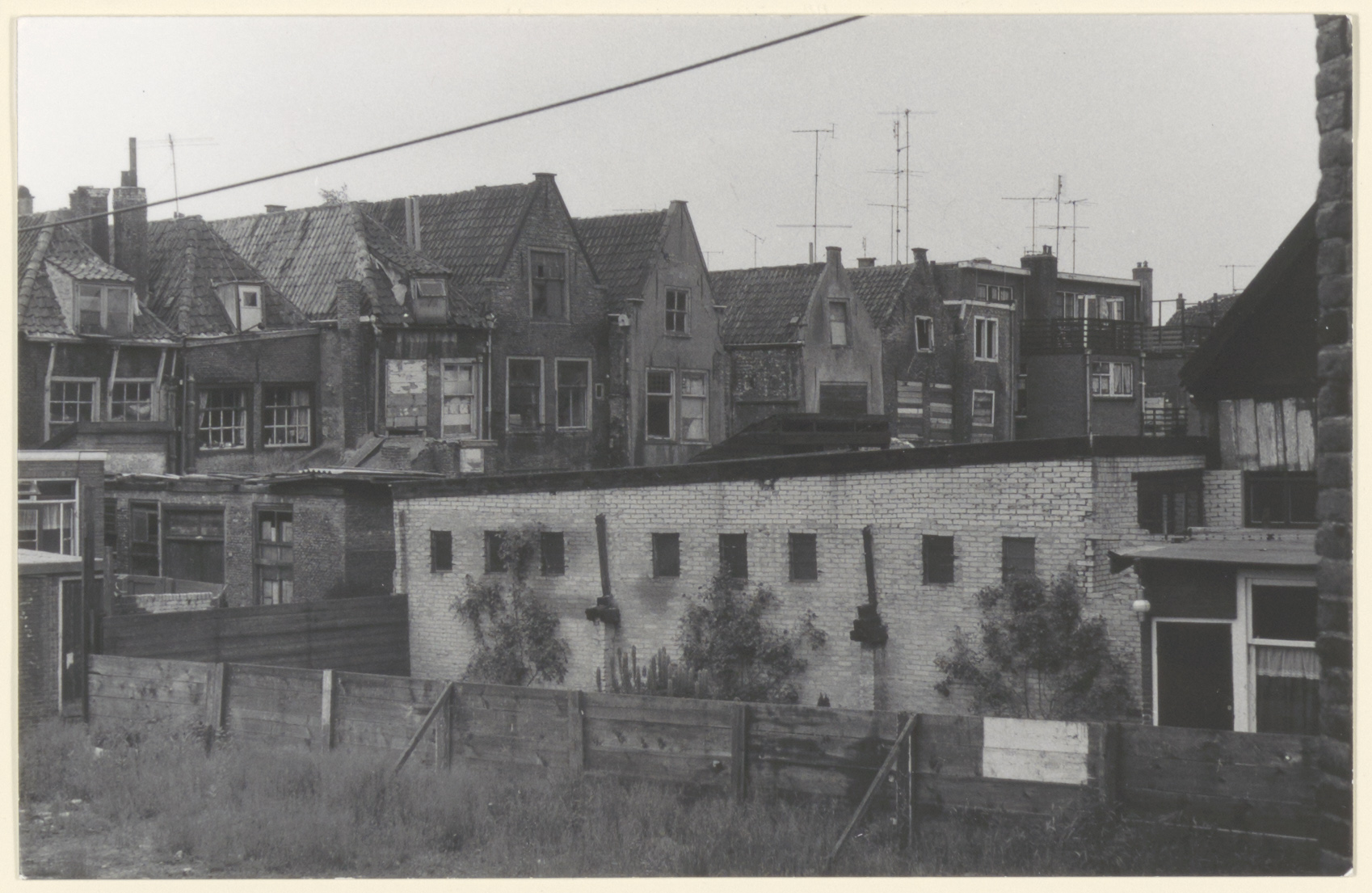 De achterzijde van huizen aan de noordzijde van de Heer Heymansuysstraat tussen de …