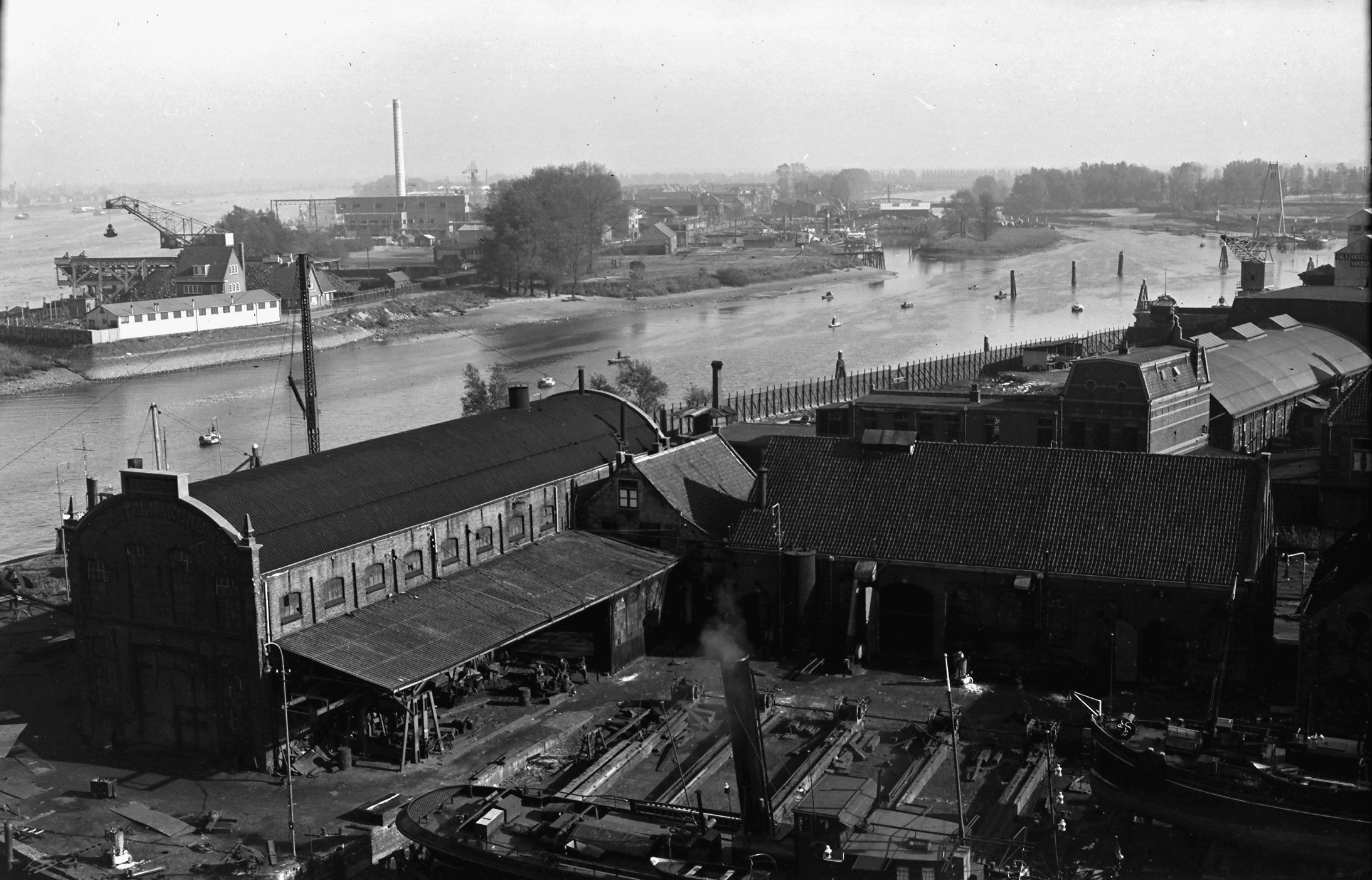 - Het Wantij gezien vanaf de gashouder aan de Bleijenhoek. Op de voorgrond meterfabriek Van Dorsser en Terhorst.