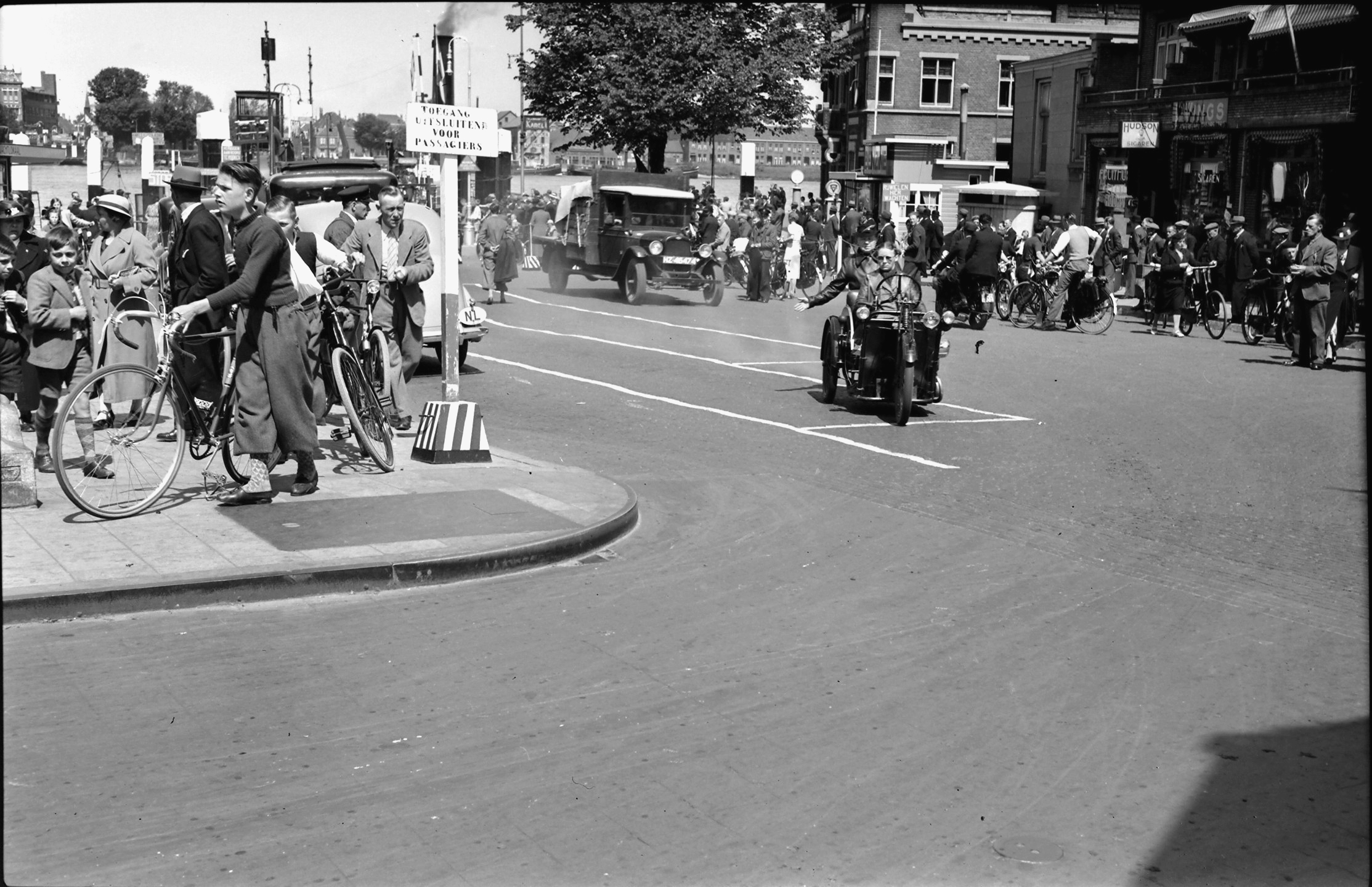 fietsen / rijwielen motorfietsen publiek / toeschouwers vrachtwagens