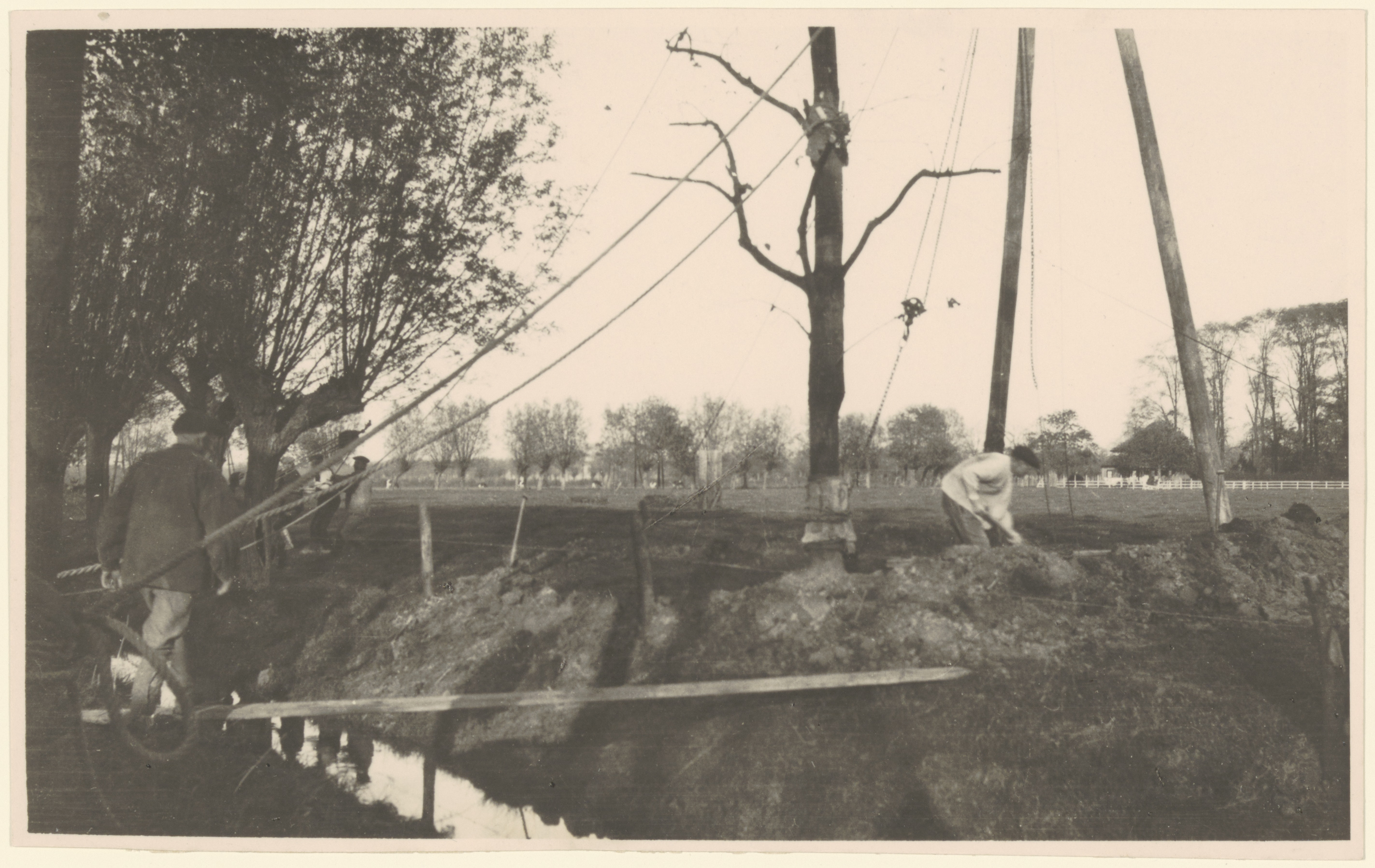 Werkers bezig met het verplanten van bomen in de buurt van Gravenstein bij de …