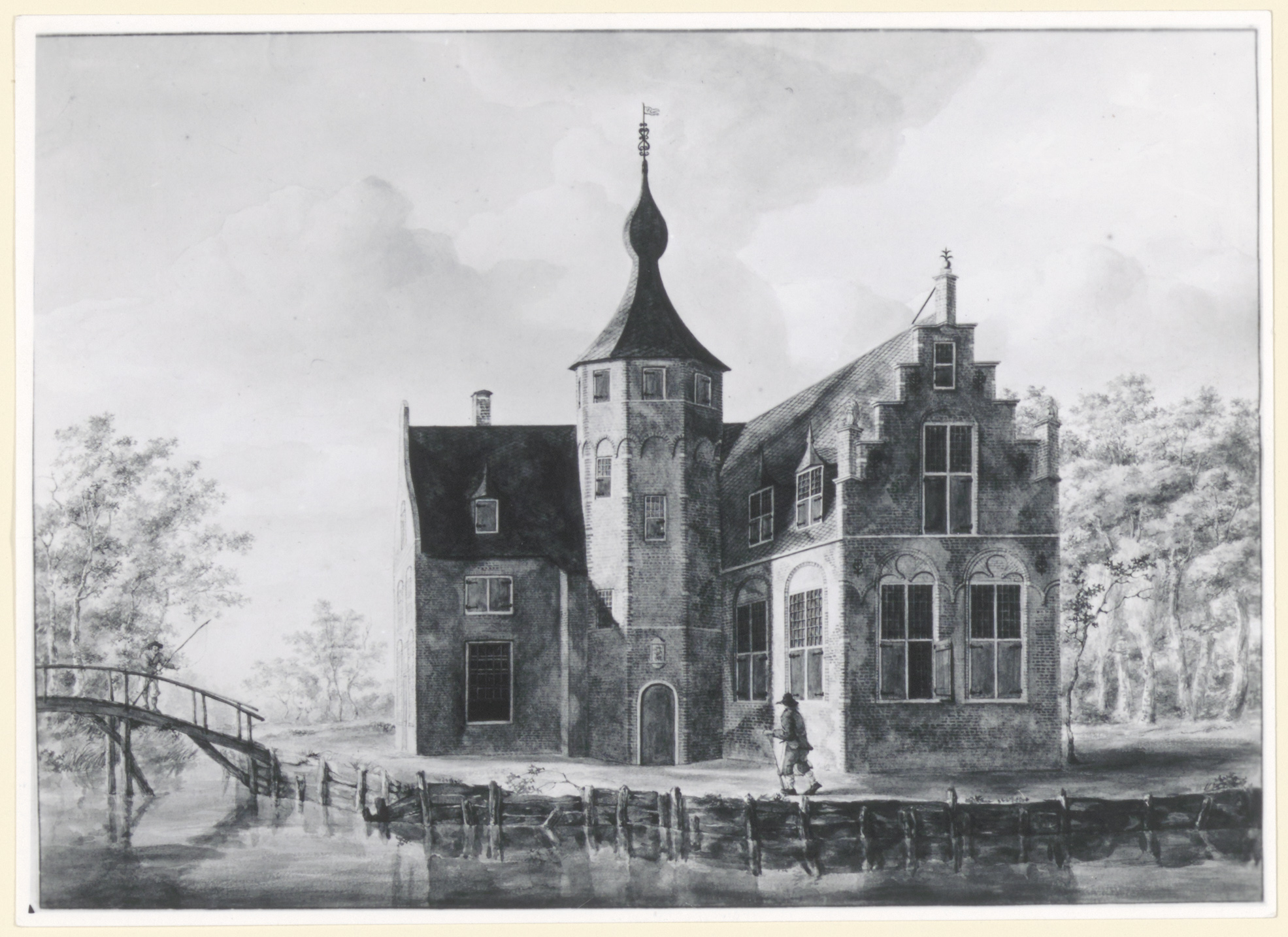 - Kasteeltje met 8-hoekige toren en slotgracht; niet bekend waar.?