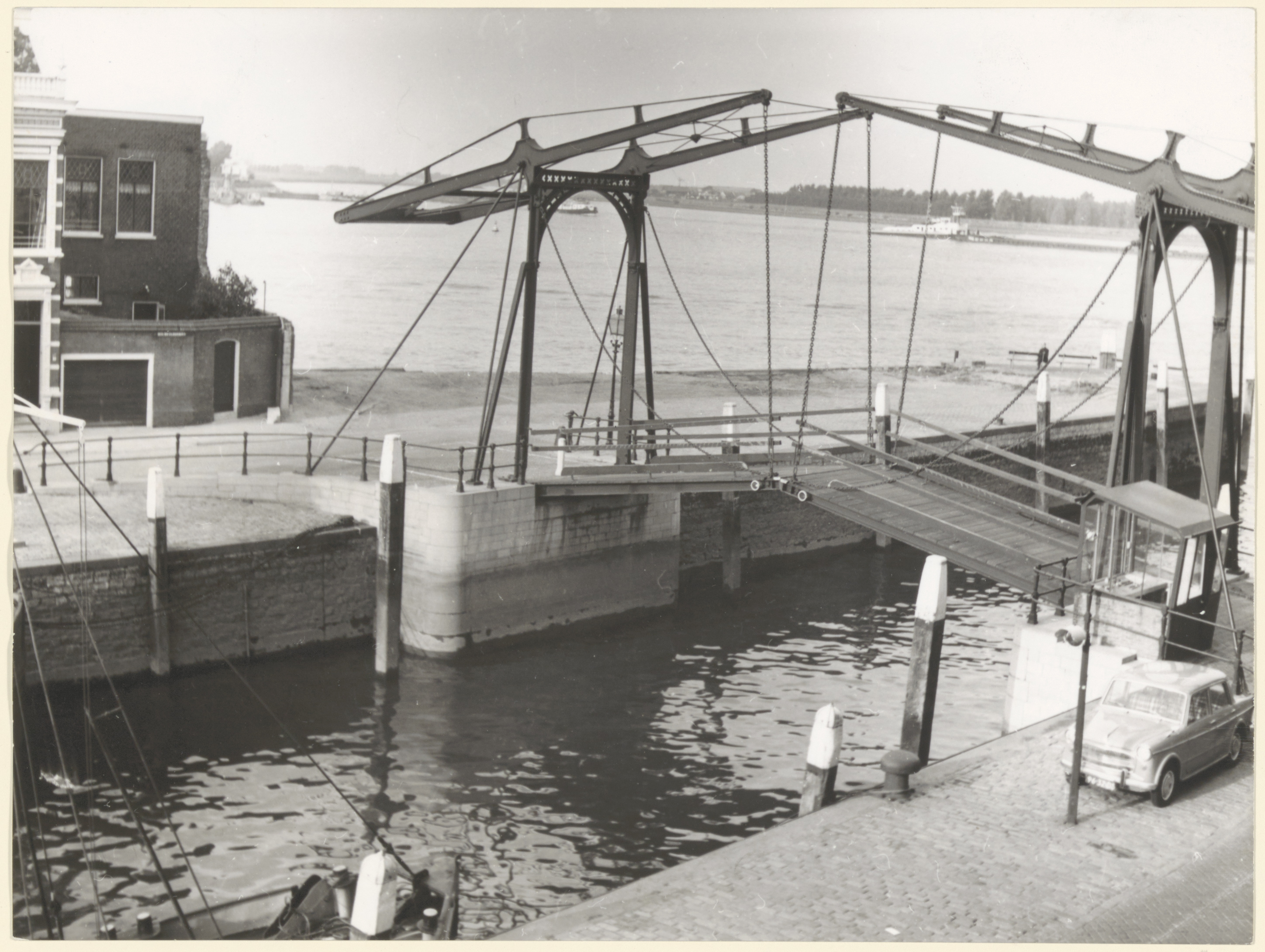 De Damiatebrug over de Wolwevershaven, gezien vanaf de Kuipershaven naar het Damiatebolwerk en het drierivierenpunt.