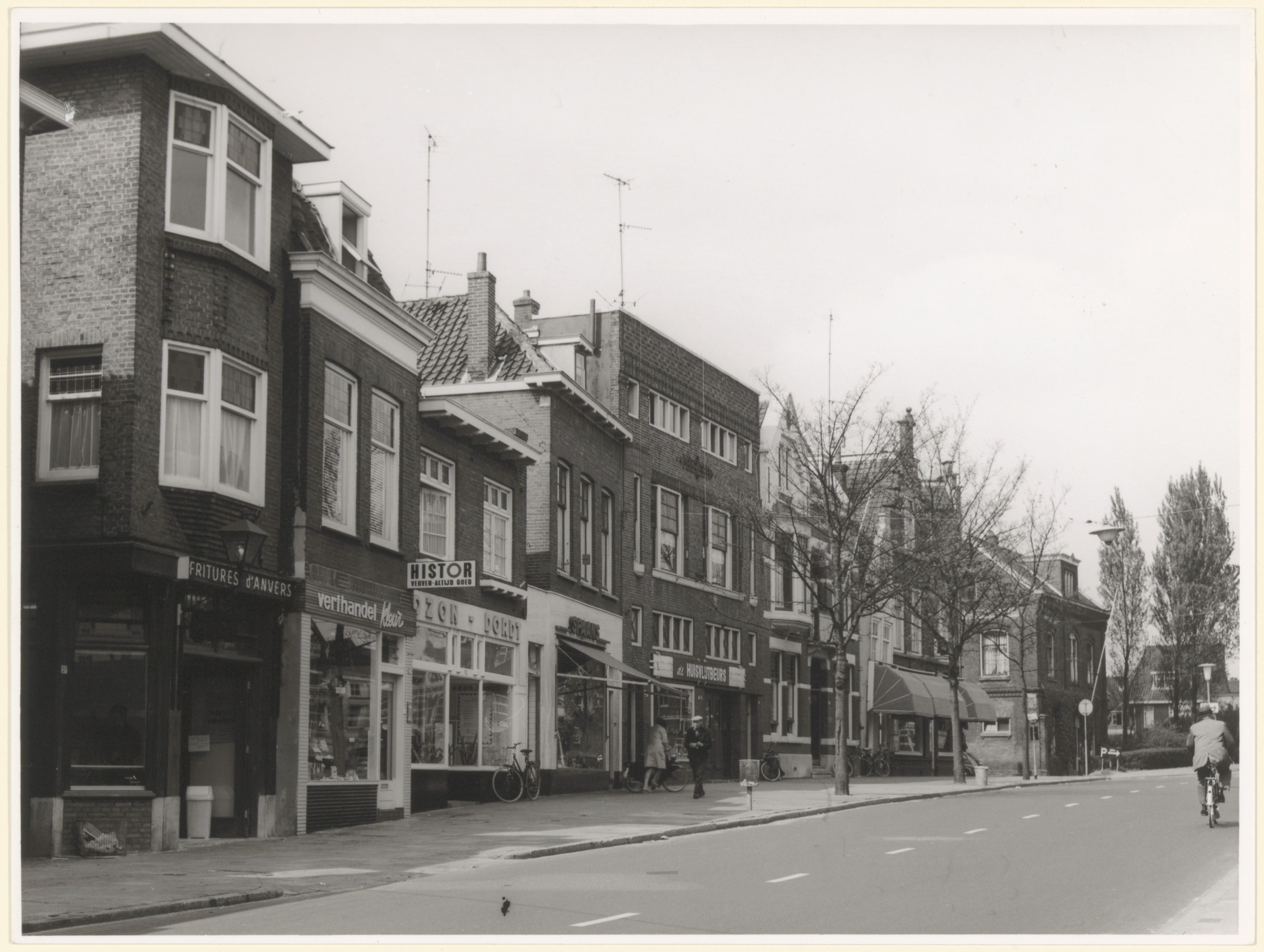 De Spuiweg westzijde, gezien naar de Spuihaven. Geheel links de Azijngang, verderop naar links de Hellingen.