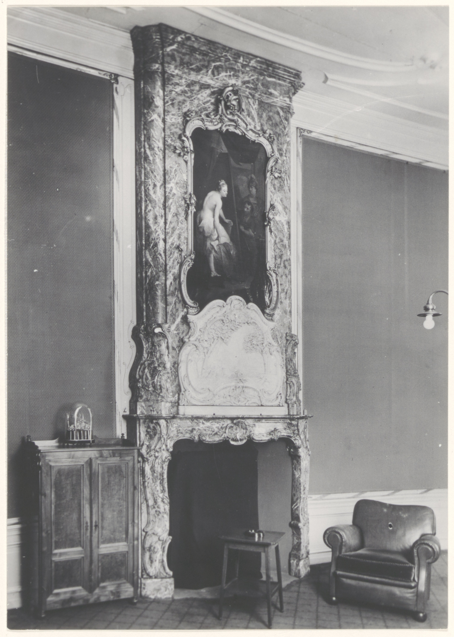 Marmeren schouw met schildering in het huis De Onbeschaamde in de Wijnstraat.