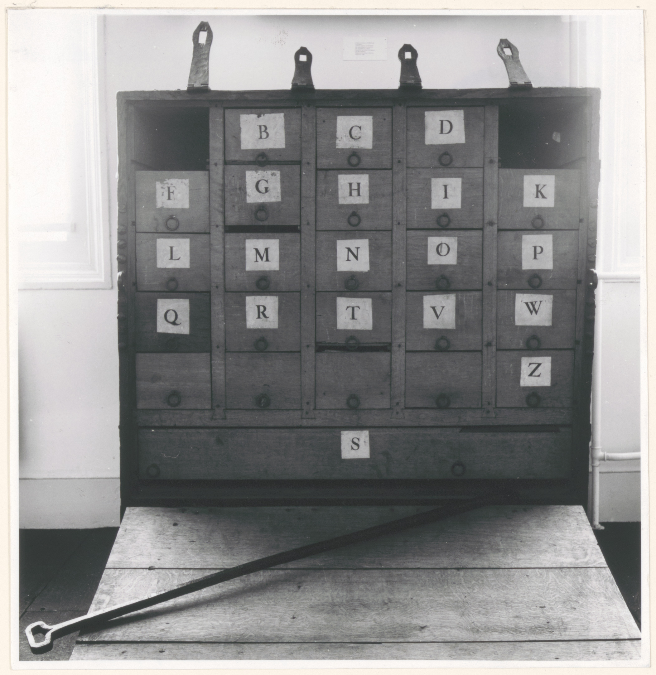 De uit de 2e helft van de 15e eeuw stammende eikenhouten charterkist, de oudste bergplaats van de gemeentelijke archieven, in Museum mr. Simon van Gijn aan de Nieuwe Haven.
