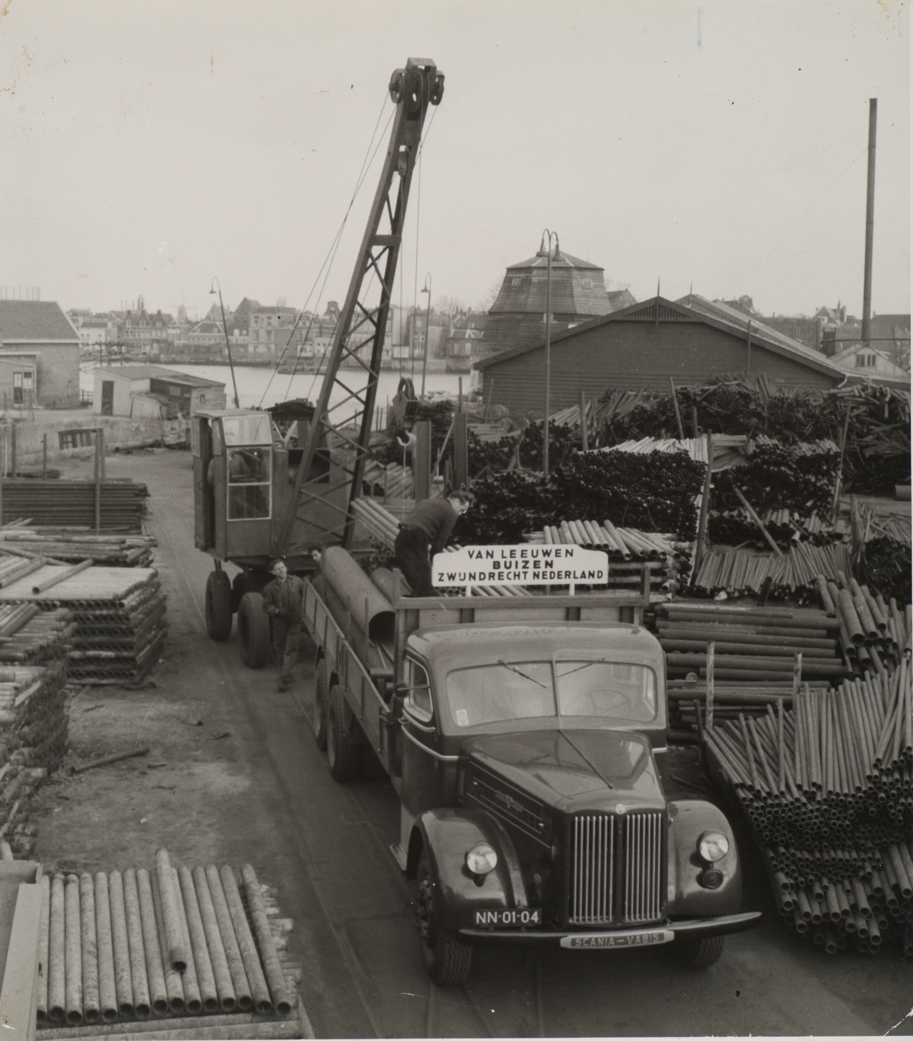 Aan het model van de vrachtwagen en het kenteken te zien is de foto genomen in begin 60er jaren.