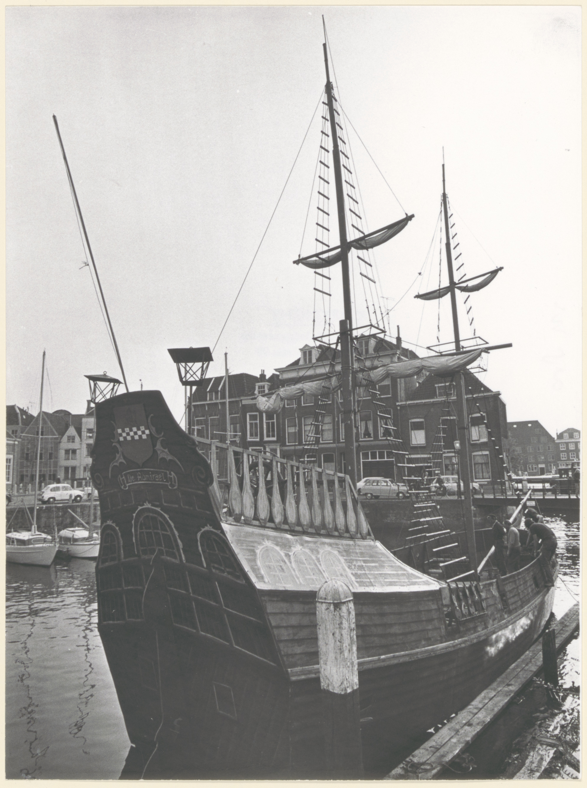 - Namaak-geuzenschip de Admiraal gemeerd in het Maartensgat tijdens de Hoffeesten van 1972. Op de achtergrond de Mazelaarsbrug en de Korte Geldersekade.