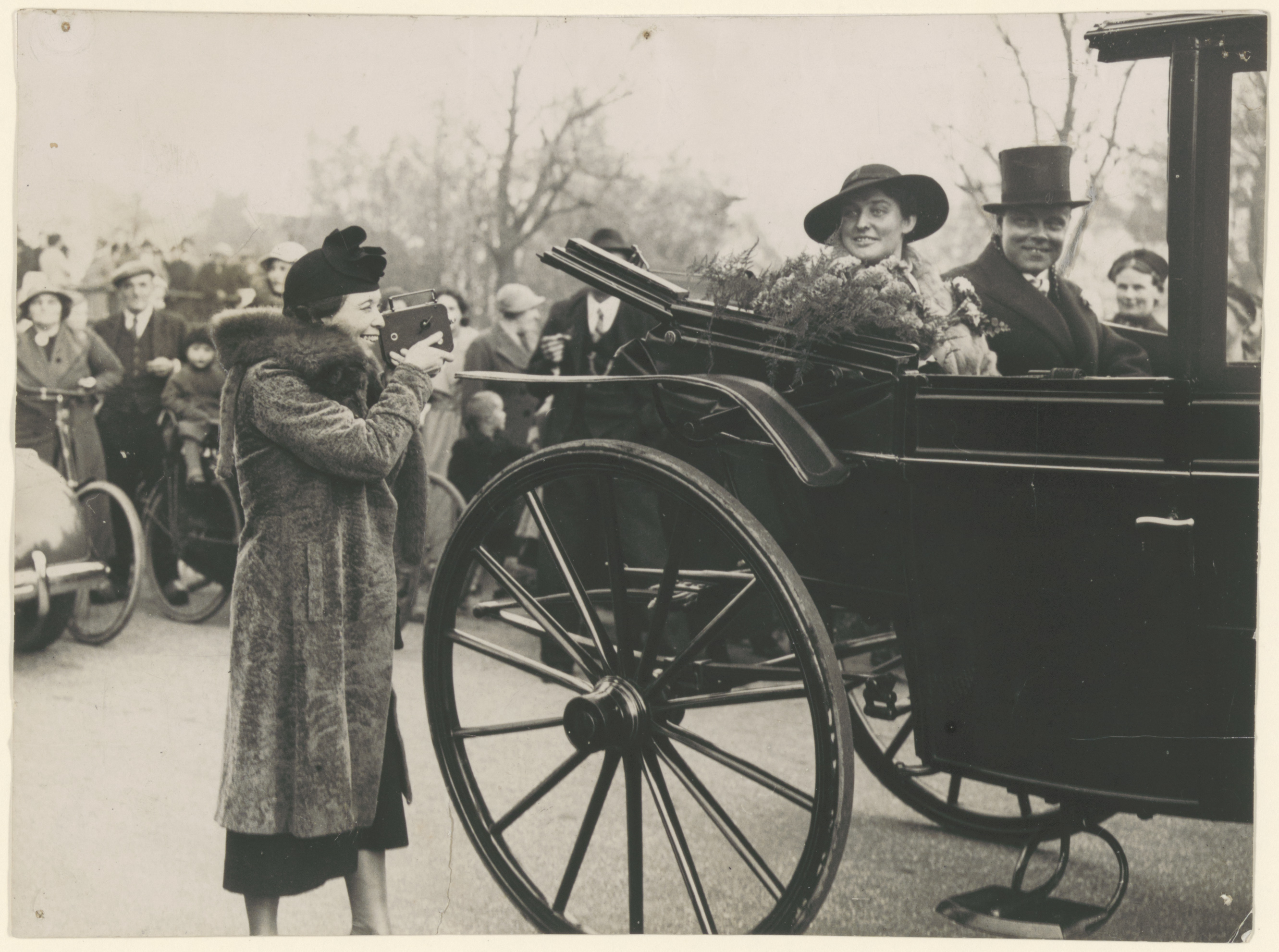 - Feestelijke intocht van mr. M.Th. Mijnlieff, pas benoemd tot burgemeester van Anna Pawlowna, voordien advocaat te Dordrecht, en zijn echtgenote in een open rijtuig in Anna Pawlowna. Een in bont gehulde dame maakt opnamen met een kodak-filmcamera.