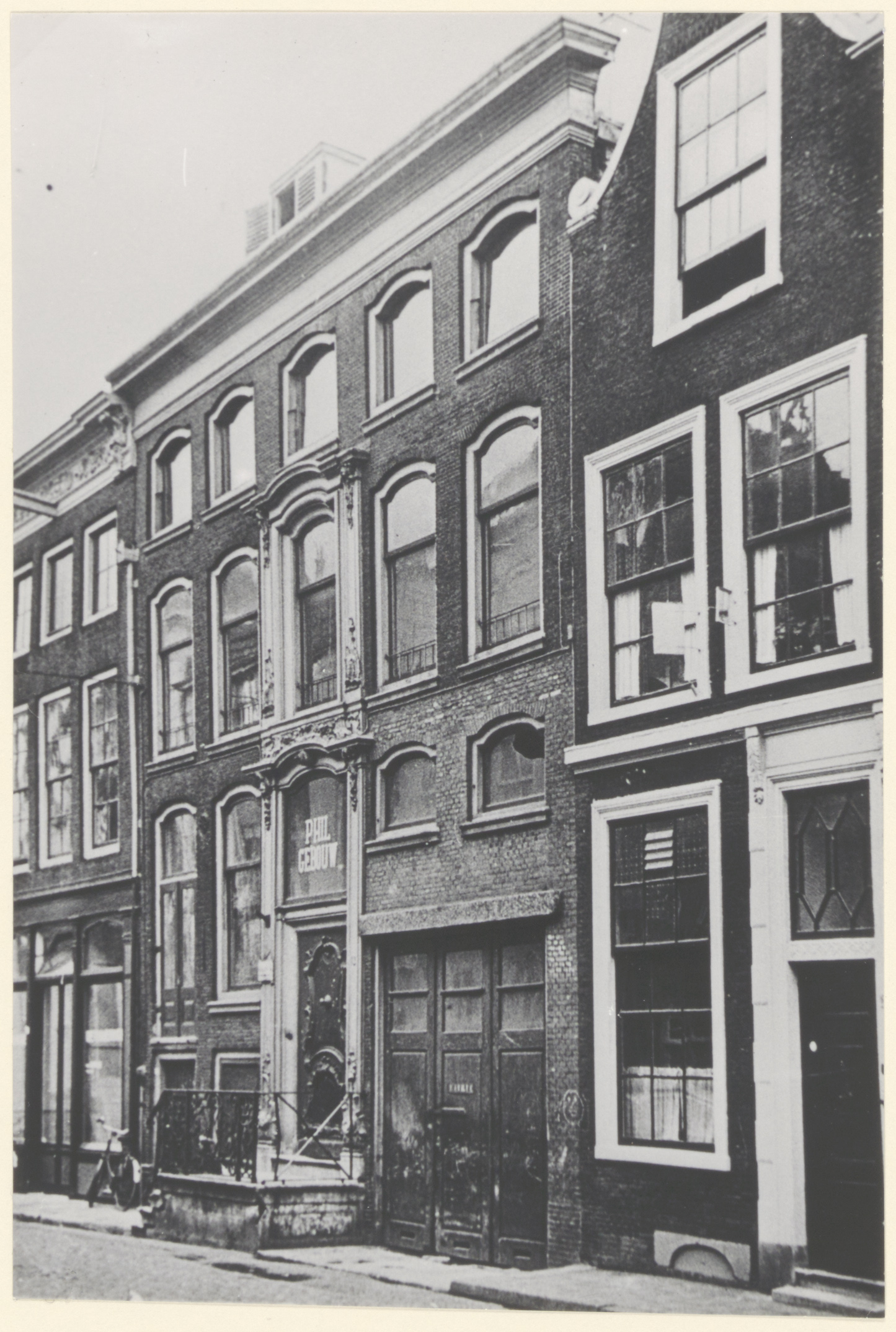 Het Phil-gebouw aan de zuidzijde van de Grotekerksbuurt vóór de restauratie.