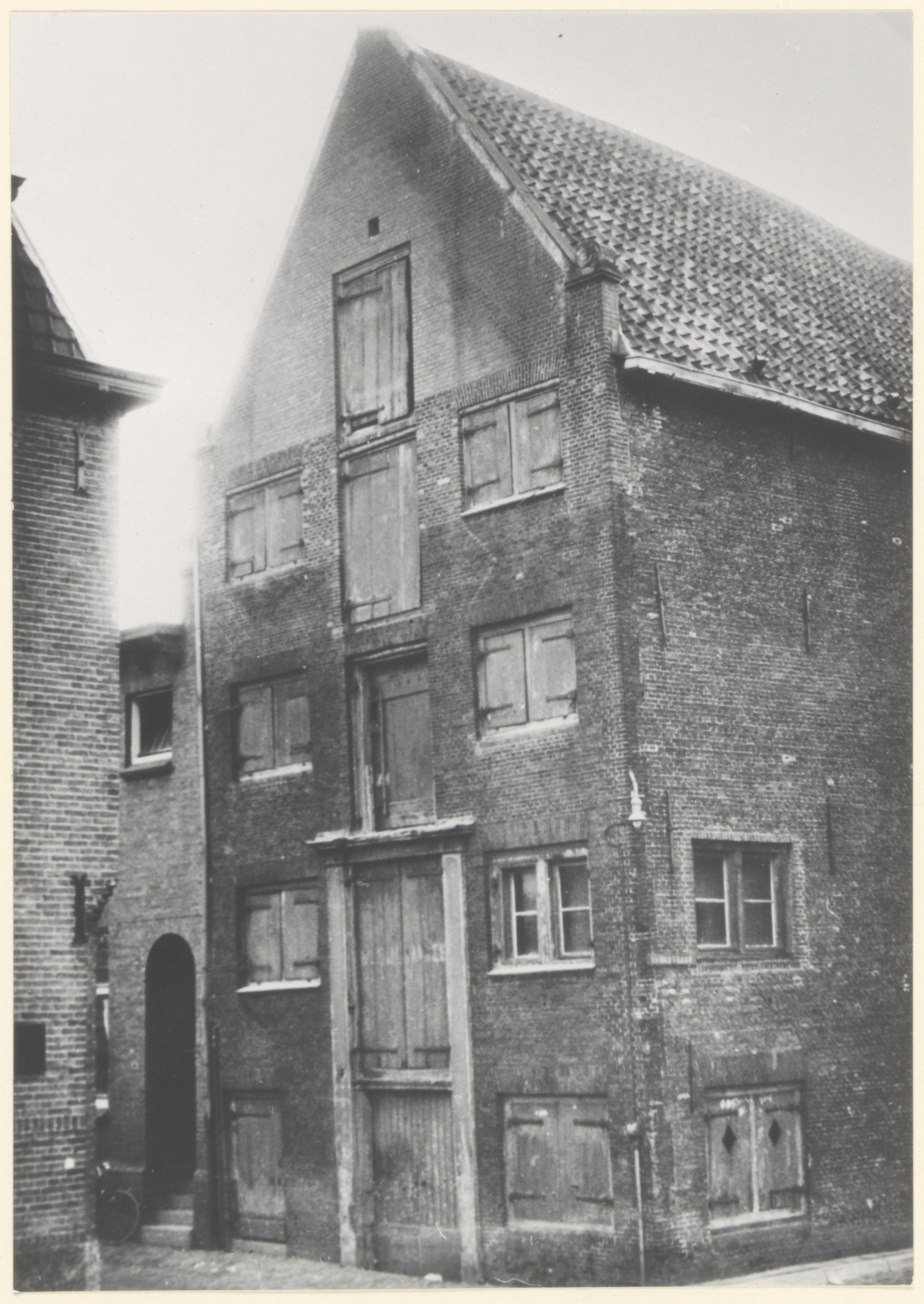 Pakhuis op de hoek van de Houttuinen en de Kerkstraat (rechts).