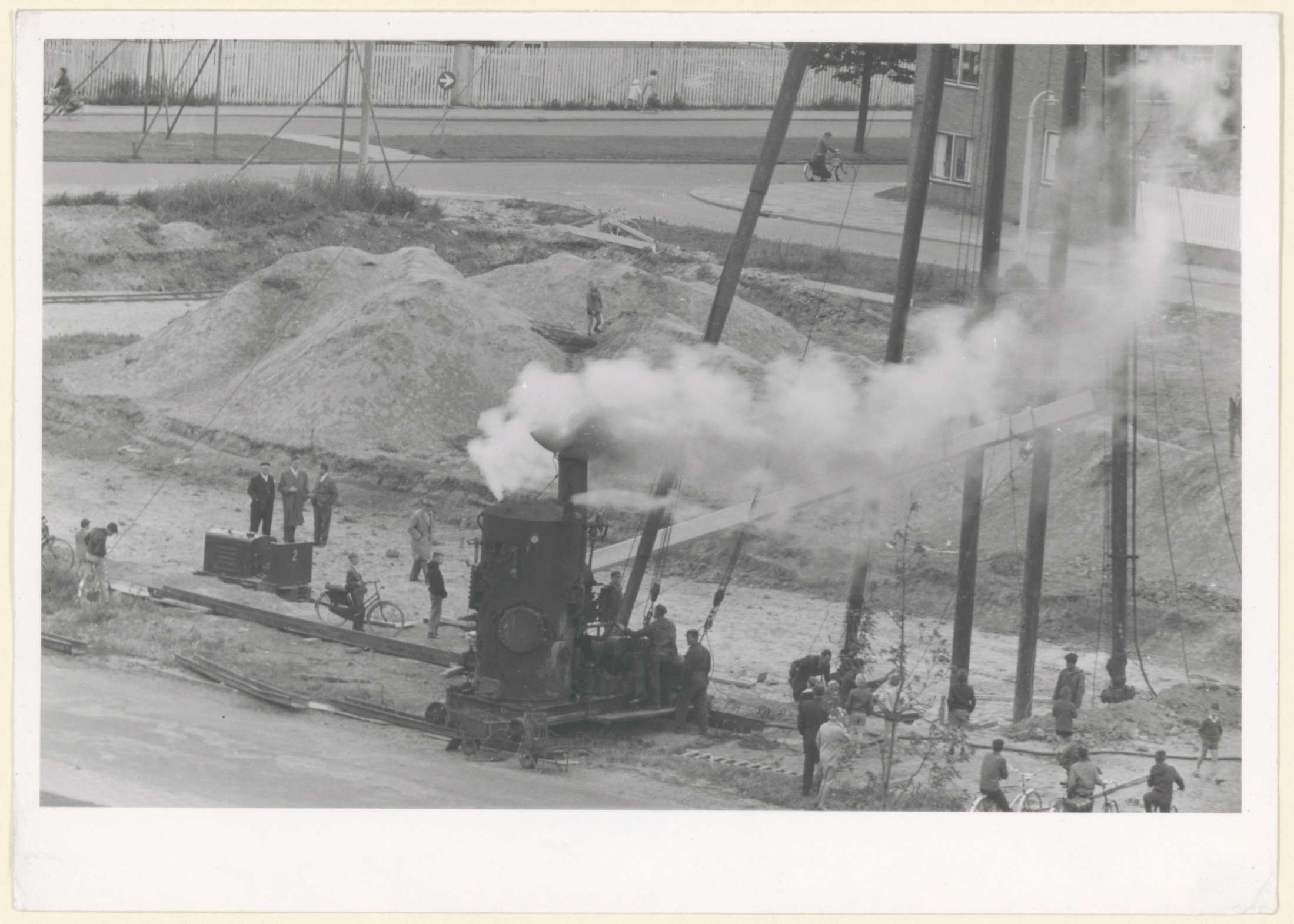 - Het heien voor de fundering van het politiebureau aan de Nassauweg. Het bureau is in november 1964 geopend.