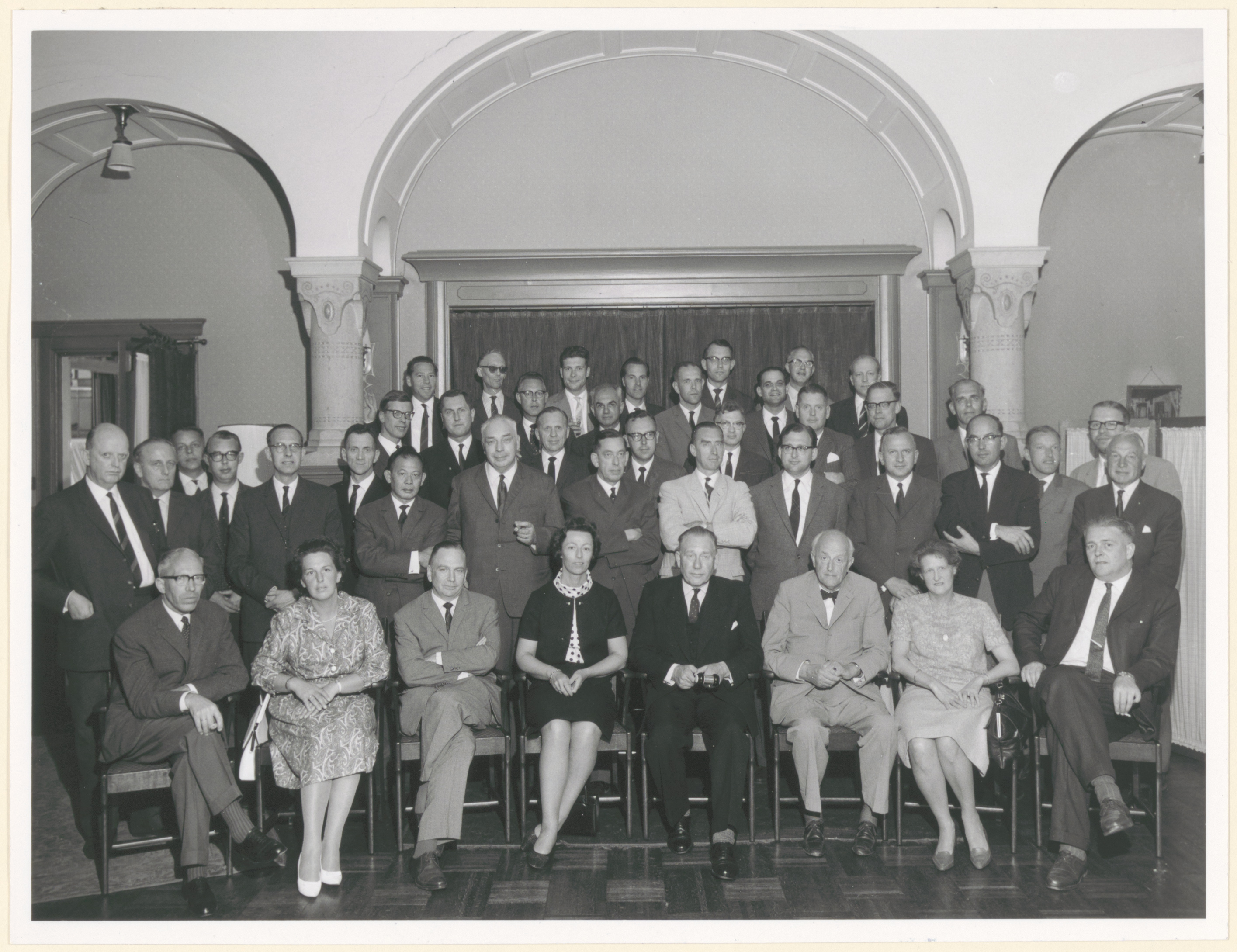 - Groepsportret van het Medisch Dispuutgezelschap bij het 65-jarig bestaan in Hotel Ponsen aan de Burg. de Raadtsingel. V.l.n.r. zittend: Van Zwijndrecht, mw. Van Leeuwen, C. van Norren, mw. Fermin, F. Vriesendorp, F. v.d. Broek, mw. Kwakkelstein, C. Hoekstein. Staand vooraan: R. Dijkhuizen, J. Nanninga, K. v.d. Pol, D. v. Kolfschoten, H. Fermin, Walvis, T. Kwee, Gündel, J. Bok, L. Wiersma, J. M. de Muinck Keizer, K. Hogewoning, H. de Raadt, Bergsma. Staand middelste rij: P. van Kuyk, v.d. Schaaf, I. Overtveld, F. Booy, Sas, J. Reepmaker, H. de Ruiter, K. Versteeg, Jac. v. Leeuwen, E. Donk, Bergsma. Achterste rij: H. Mourus, H. Wagenaar, S. Schalema, E. Gans, B. van Dijk, B. Stam, T. Beek, Del Prado, H. Venema, K. Koning, P. v. Limpt.