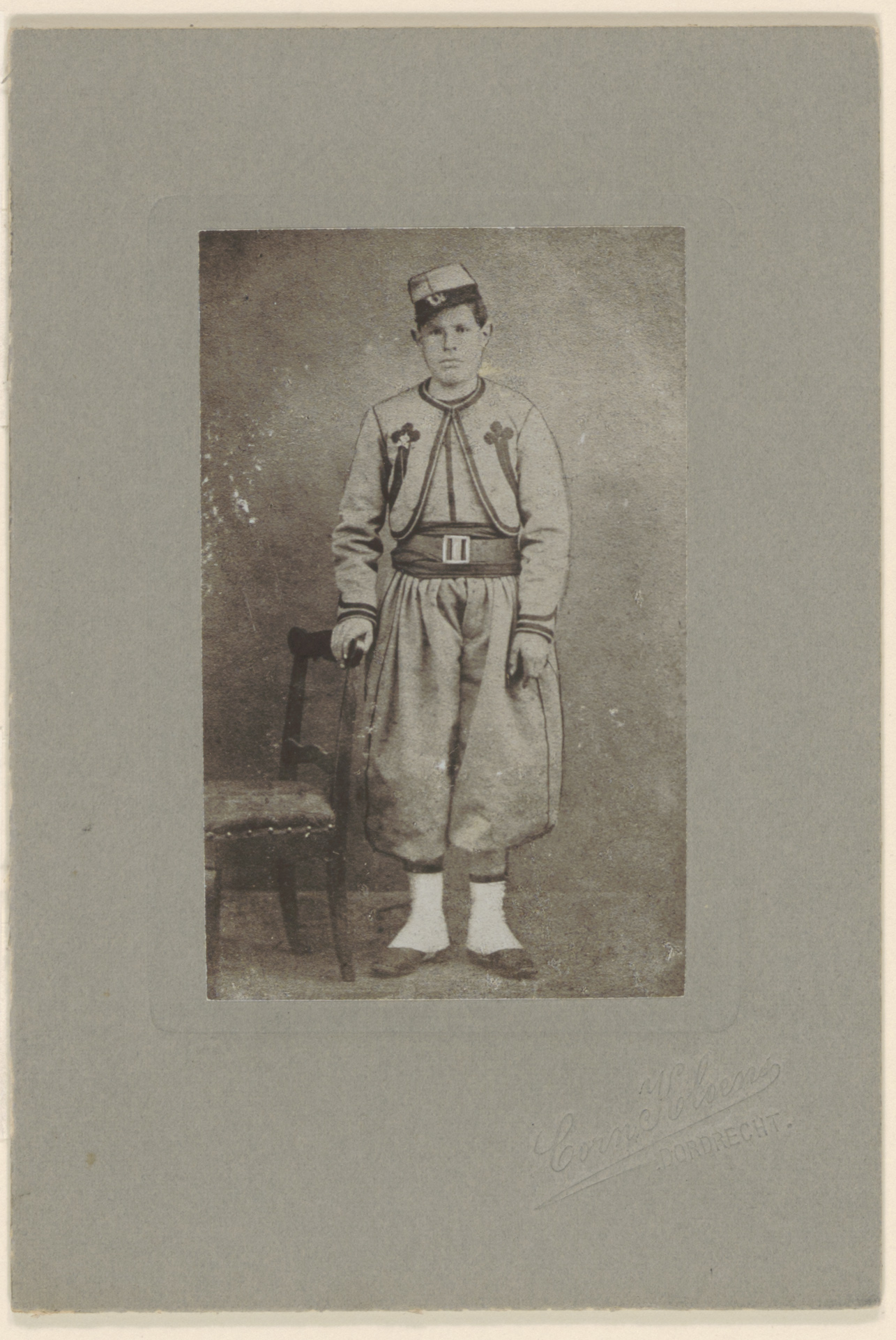 - Portret (ca. 1862) van Joannes W. Gubbels, in zouaven-uniform, de rechterhand op een stoel geleund; geboren te Leeuwen bij Tiel in de Moolestraat op 28 oktober 1842, in 1913 nog in leven; Gubbels was één van de Dordtse pauselijke zouaven.