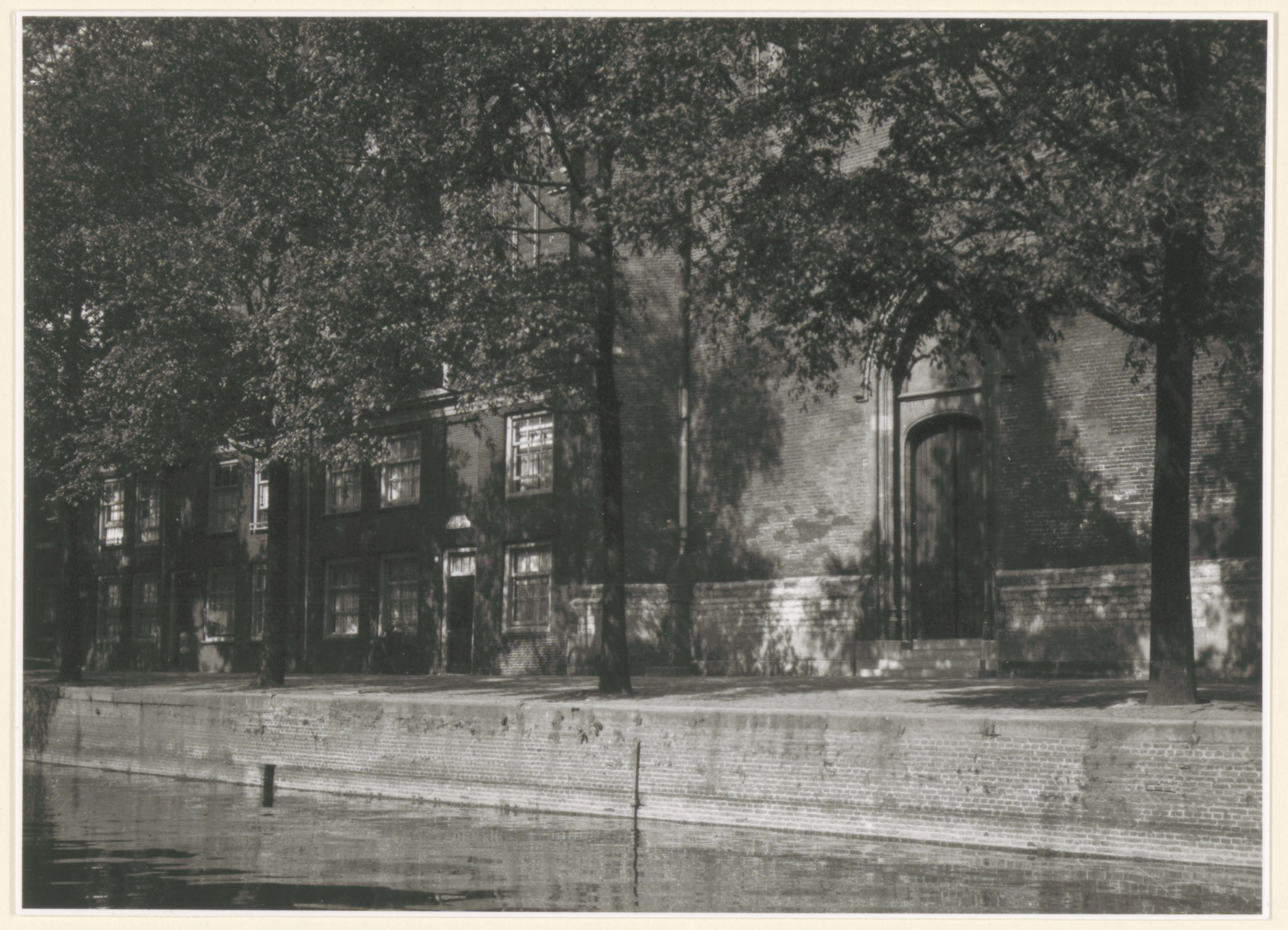 - De ingang van de Grote Kerk aan de Pottenkade, gezien over de Voorstraatshaven.