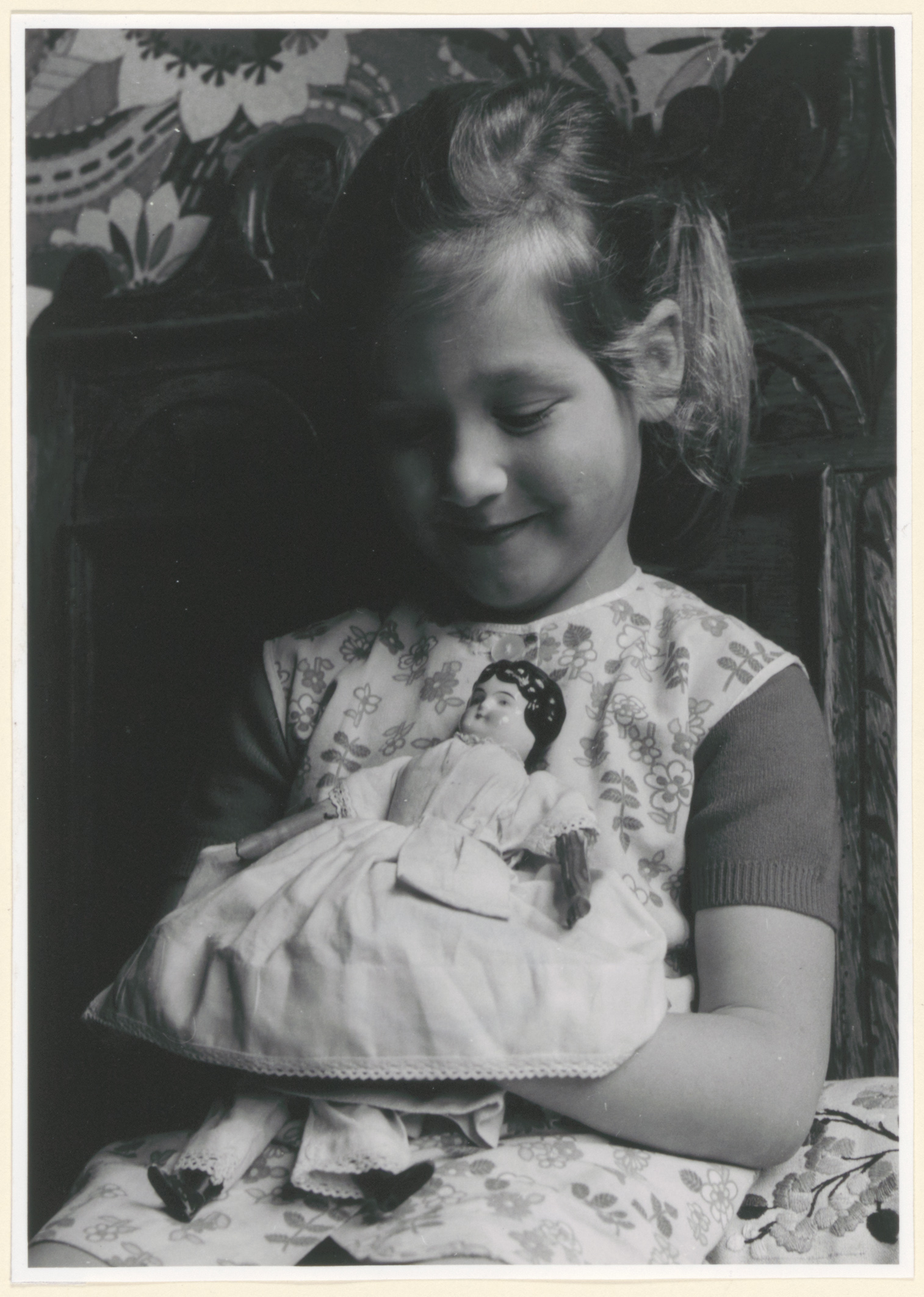 Een meisje met een pop die haar is gegeven door het evangelisatie- of zondagschooltje …