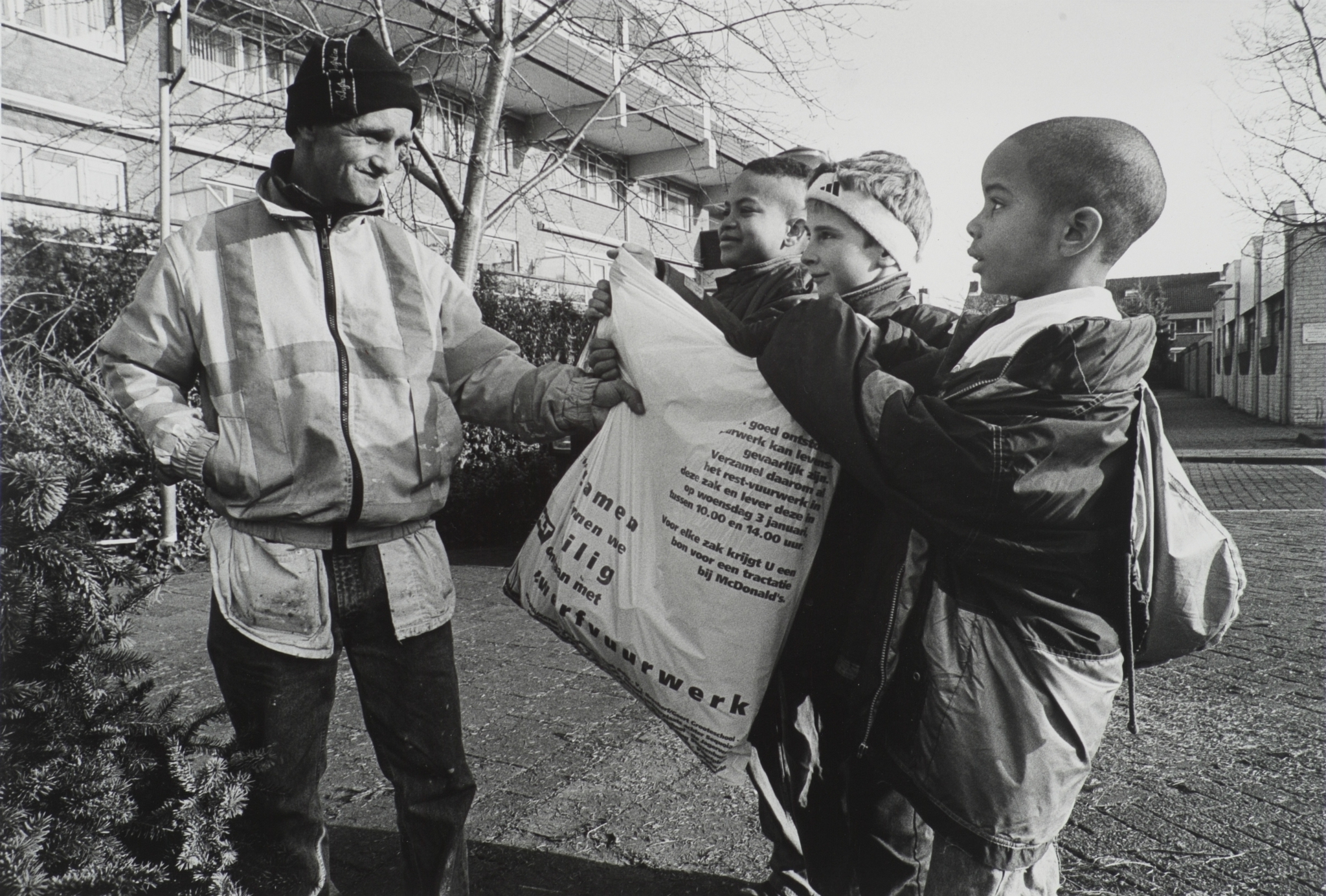 Inzamelen van door de jeugd verzameld afvalvuurwerk.