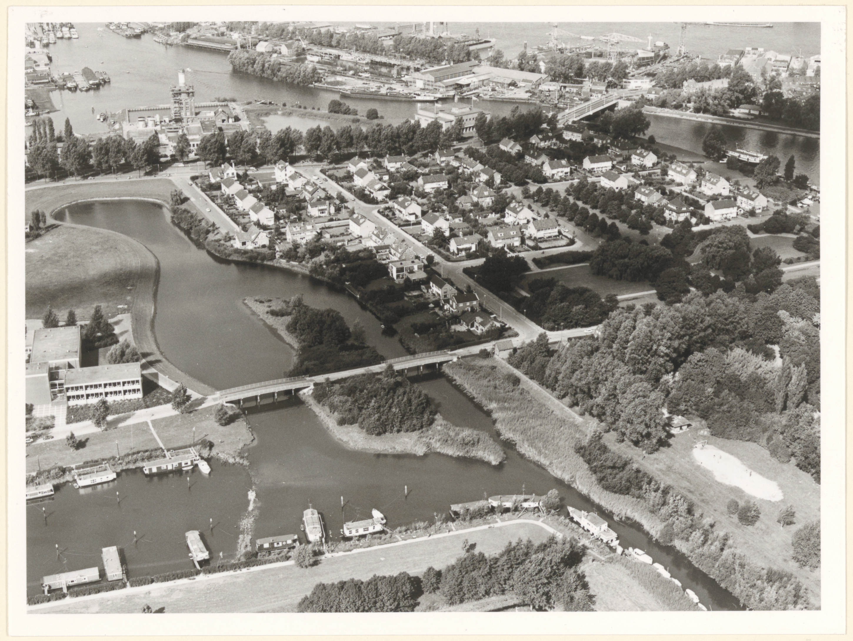 Luchtfoto van de Vlij en omgeving naar het noordwesten; links de Vlij en de jachthaven, …