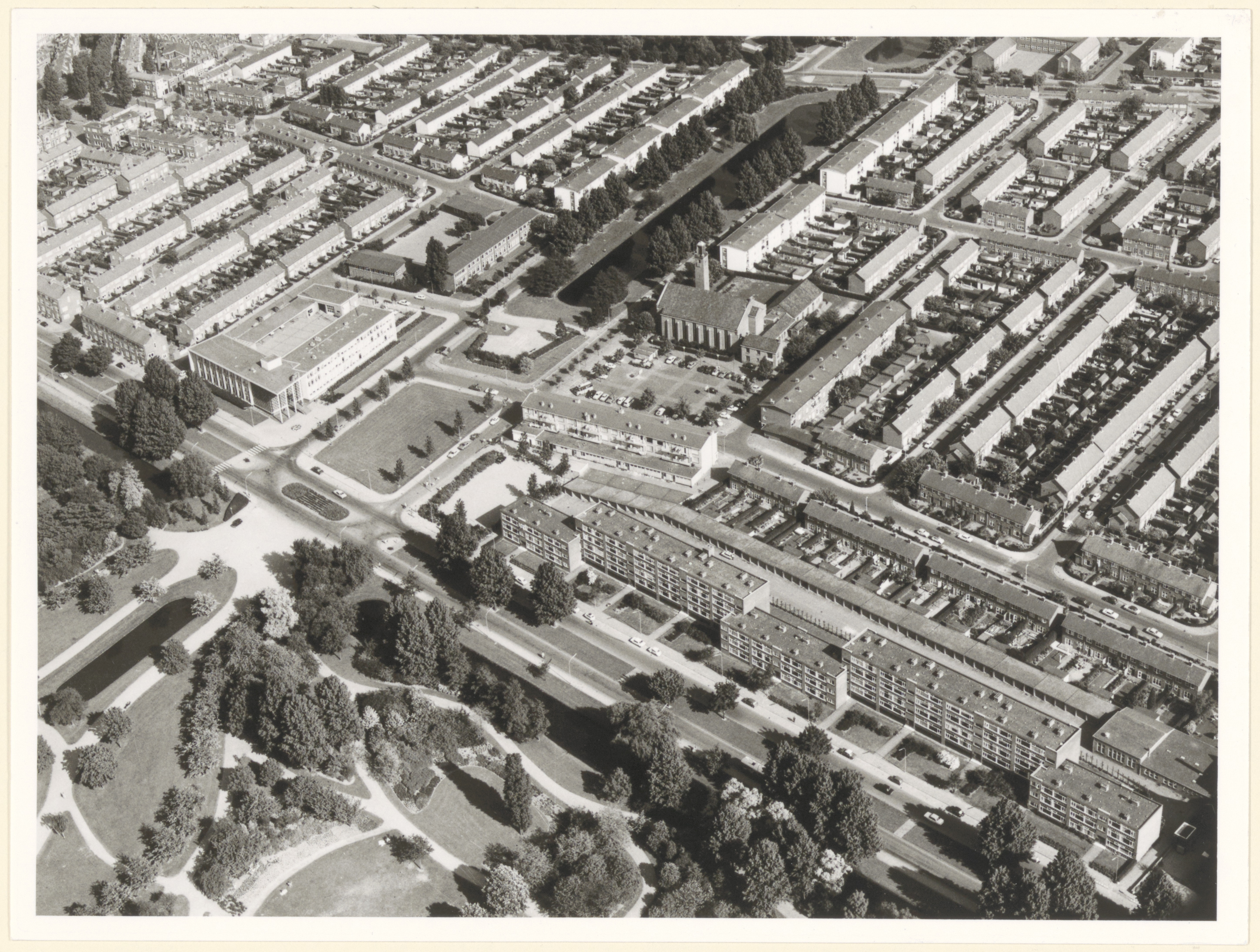 Luchtfoto van de Nassauweg en omgeving, gezien naar het zuidoosten; onder een deel van …