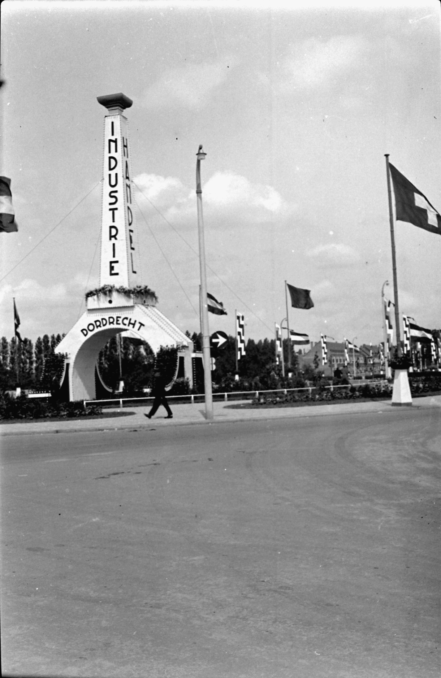 - Zuil op het Hugo de Grootplein tijdens de brugfeesten bij de opening van de verkeersbrug over de Oude Maas.