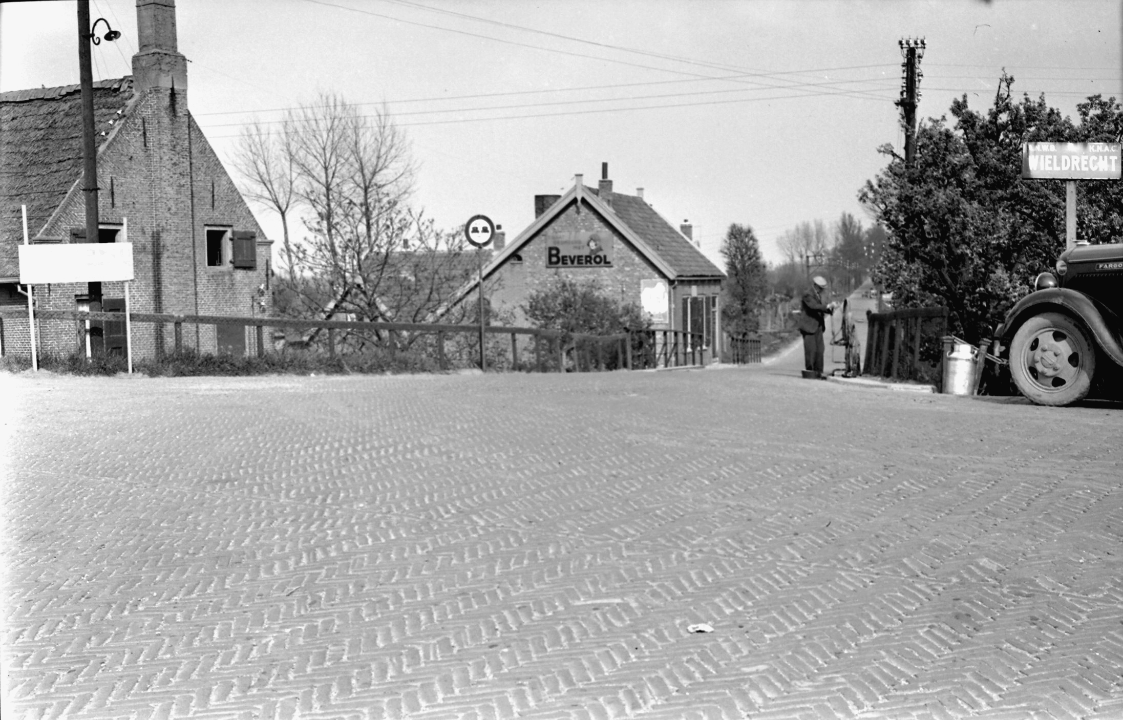 - Een fietser plakt zijn band, hoek Wieldrechtse Zeedijk Reeweg Zuid te Wieldrecht.