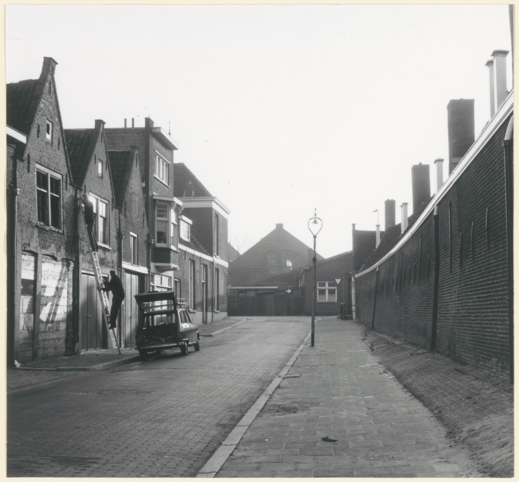 arbeiders / werklieden auto's hofjes lantaarns / straatverlichting