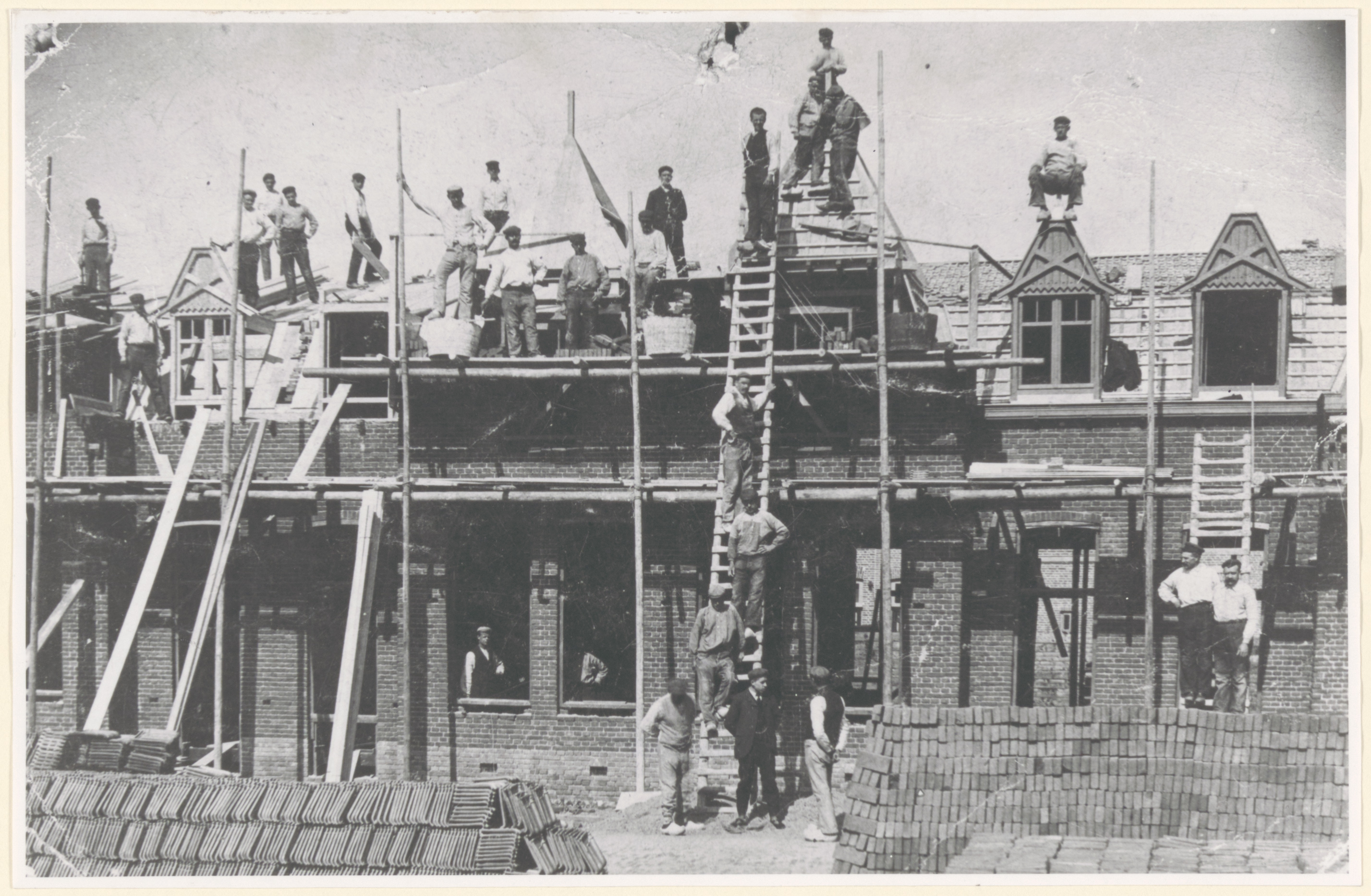 Dit is een deel van de rij Sophiastraat 8-36 tijdens de bouw in 1908.