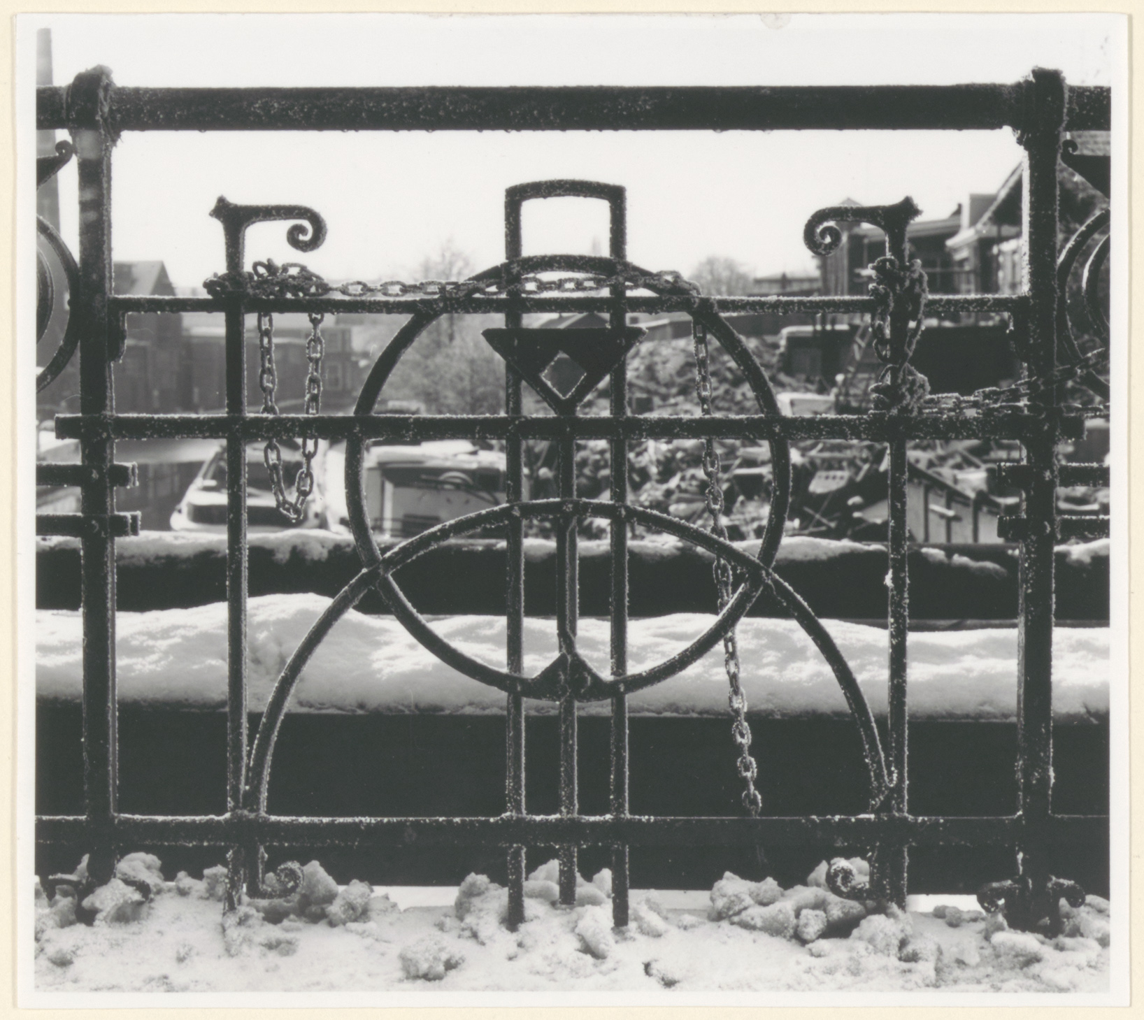 - Het hekwerk van de Noordersluisbrug, gezien van de brug in de richting van de Sint Jorisbrug.