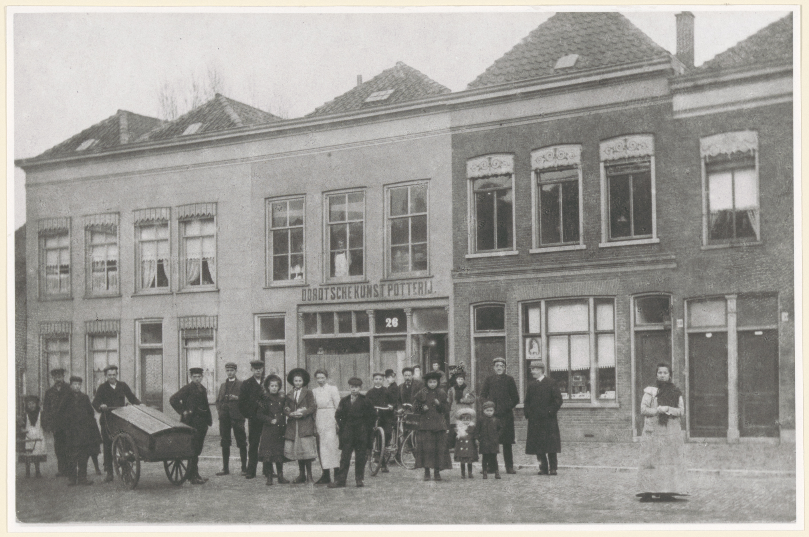 - Vier huizen aan de oostzijde van de Blekersdijk. In het midden op nr. 26 ( oud nr.) de Dordtse Kunstpotterij.