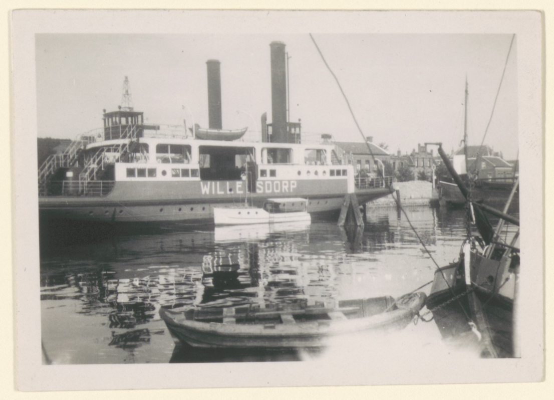 - De veerboot Willemsdorp van de veerdienst tussen Willemsdorp en Moerdijk aan de aanlegsteiger te Moerdijk.