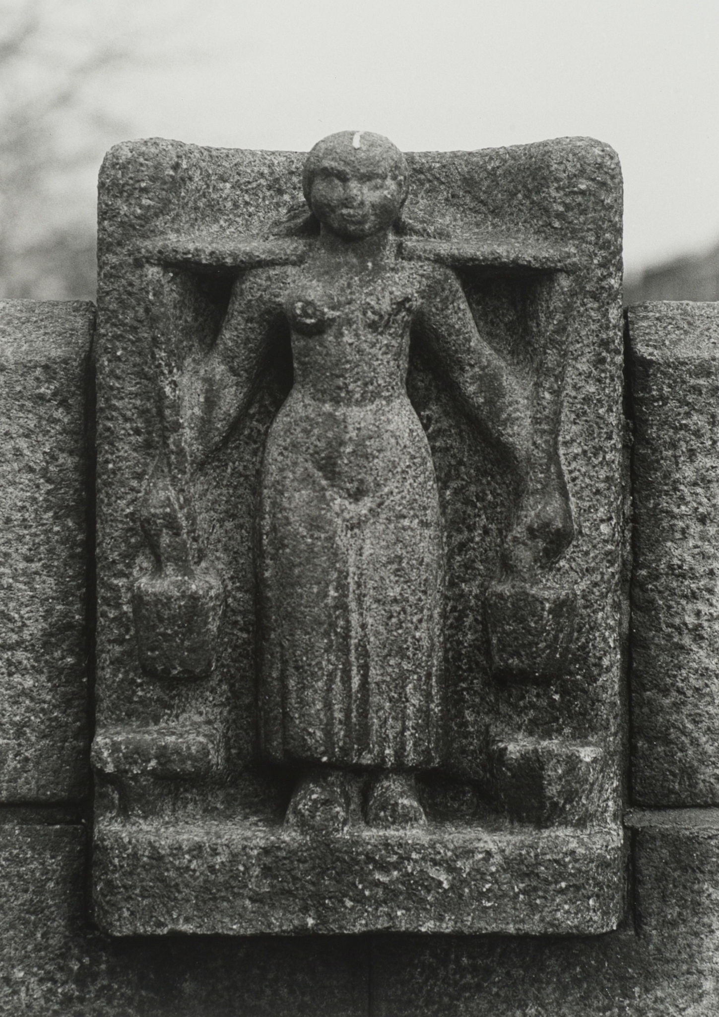 Uitgehouwen beeld van Hildo Krop in de Leuvebrug