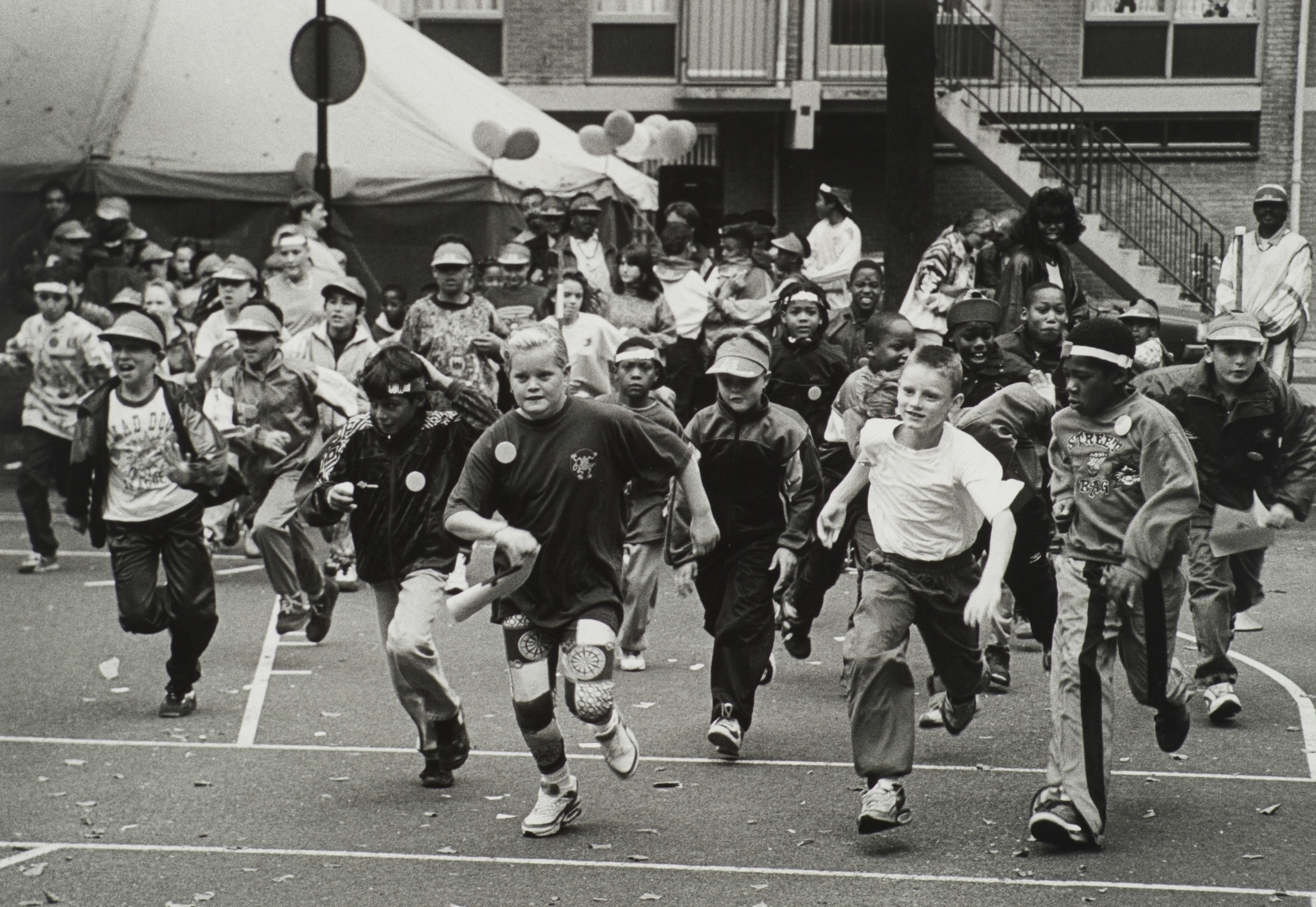 Groep jongeren bij activiteiten bij buurthuis 't Meesterhuis in de Doelstraat.