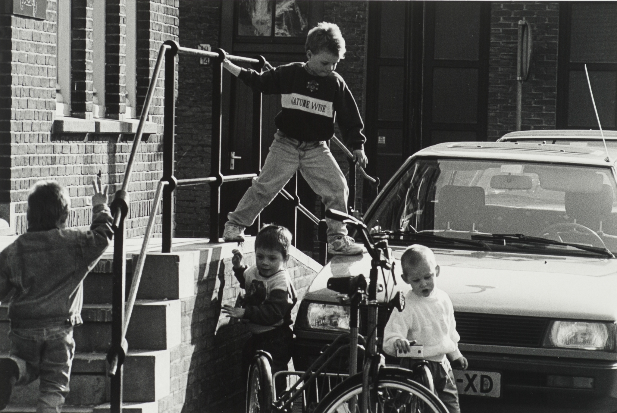 - Kinderen aan het buitenspelen op de trap voor het archief aan het Stek