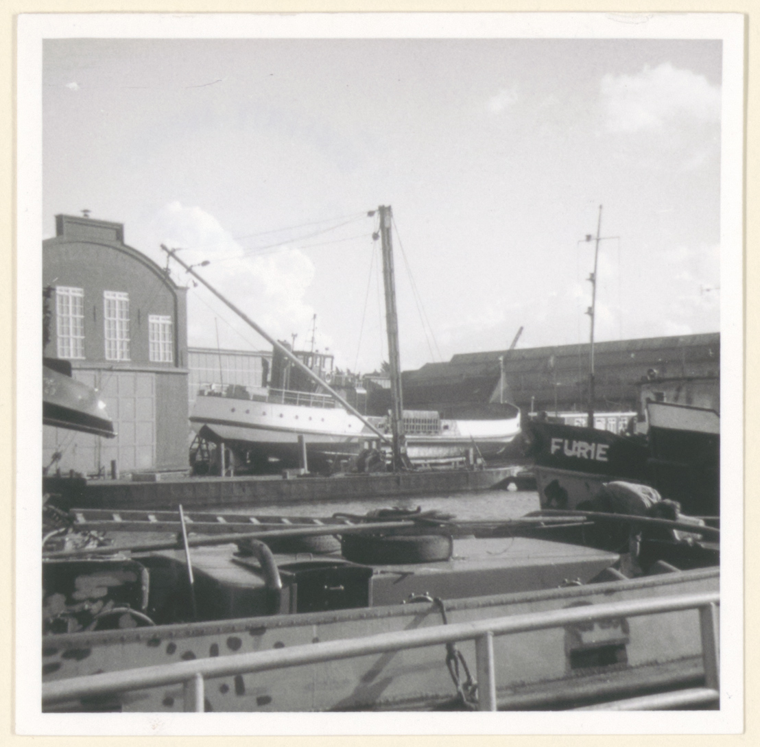 - De scheepswerf Koopman aan de Riedijkshaven en de Noorderstraat. Op de helling ligt de Veerdienst X.
