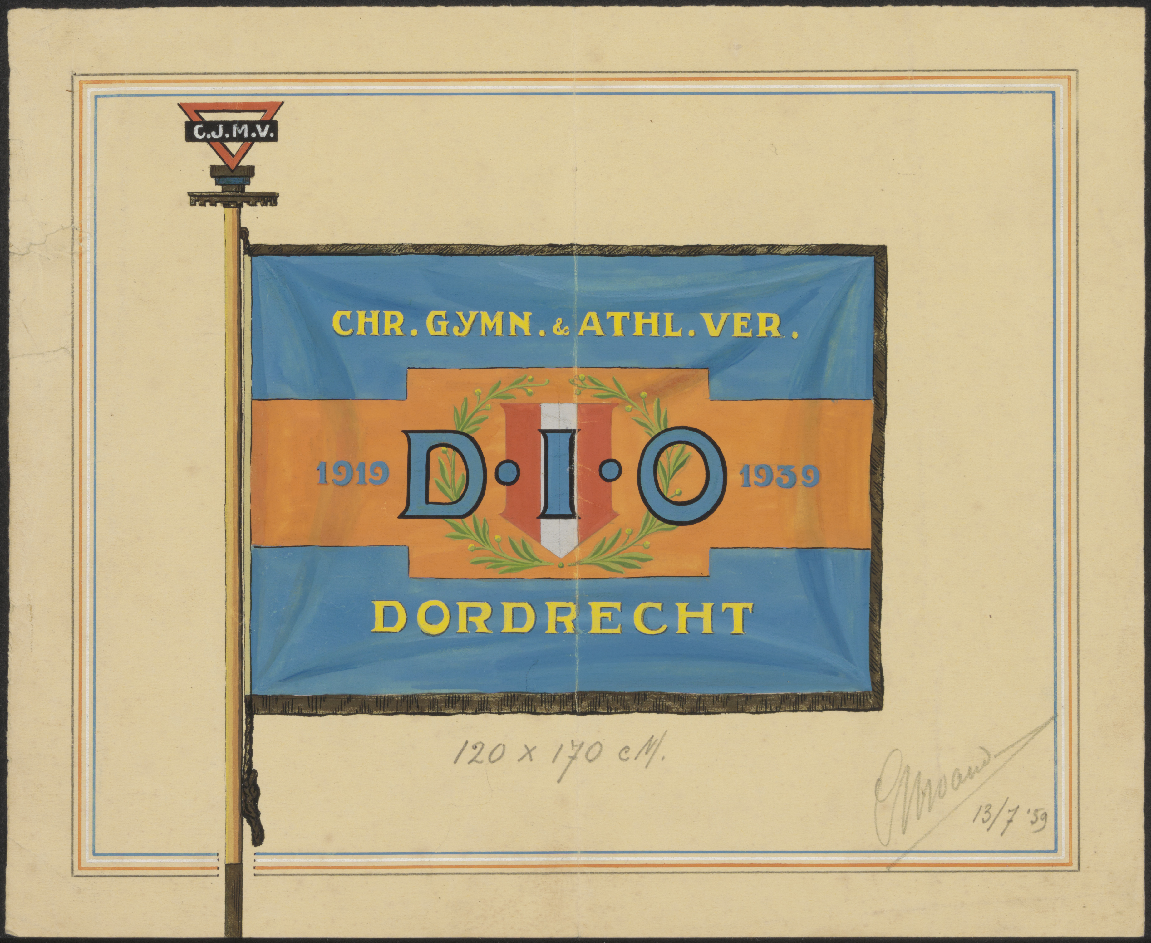- Een vlag met stok van de Christelijke Gymnastiek en Atletiekvereniging D.I.O. (Door Inspanning Ontspanning), opgericht 1919 te Dordrecht.
